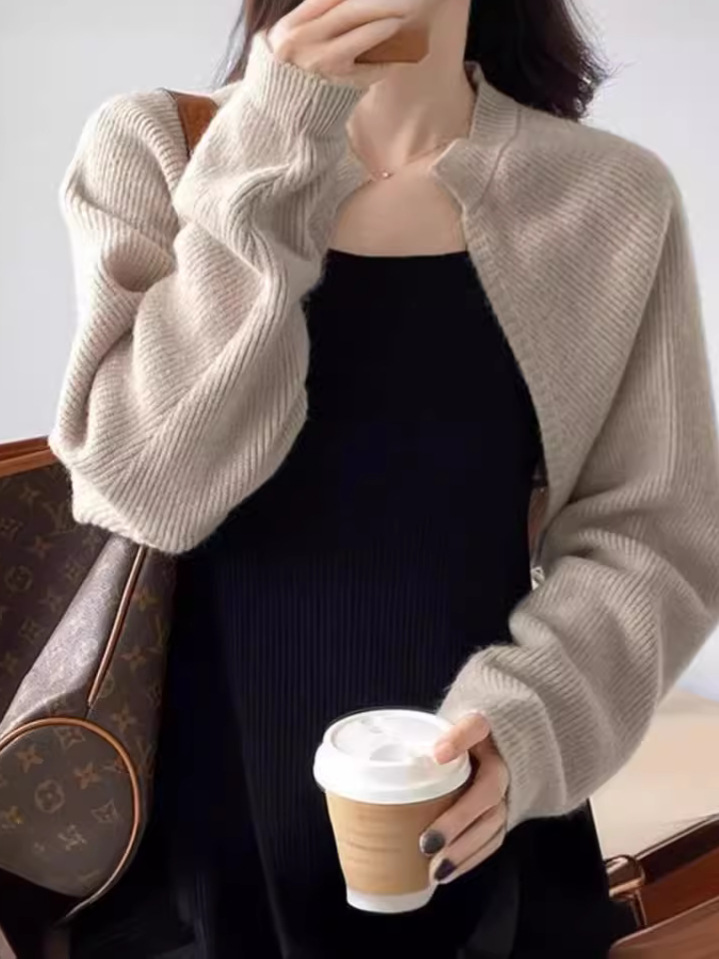 Главная страница > Французский маленький плечо короткий трикотажный кардиган женский весенне-осенний блузка с юбкой платок рукава свитер летучей мыши