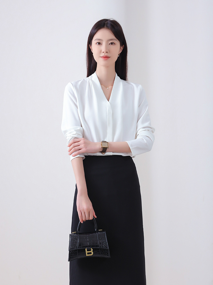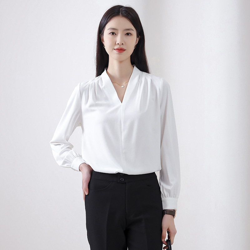 Главная страница > Женская осенняя блузка из шифона большого размера с длинным рукавом, белая, свободного кроя, элегантная, универсальная, для офиса и повседневной носки.