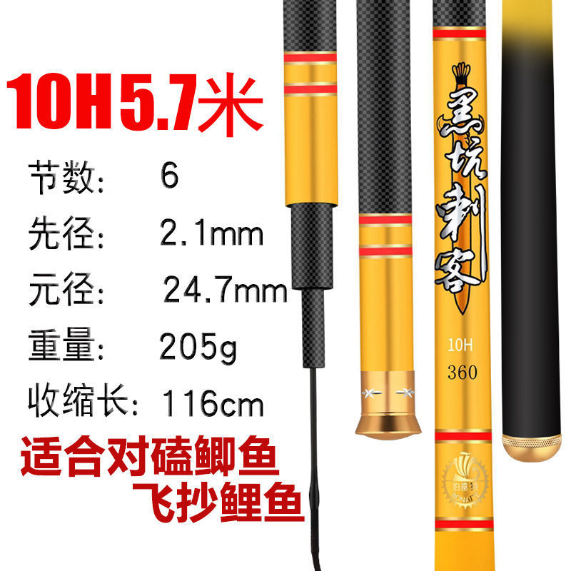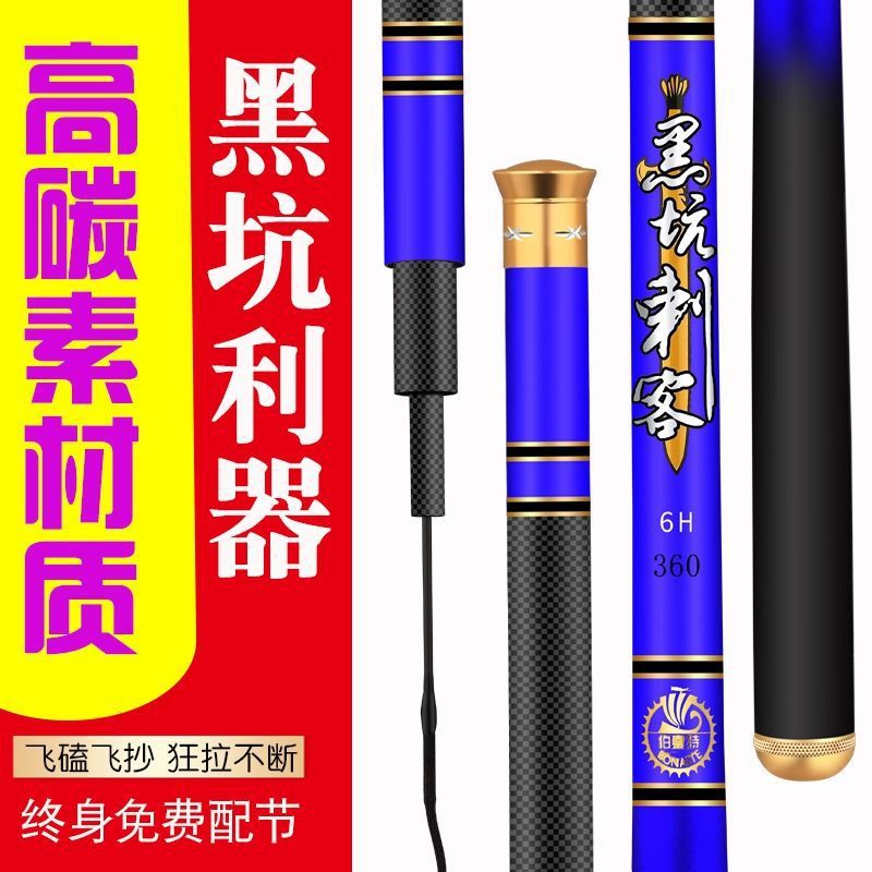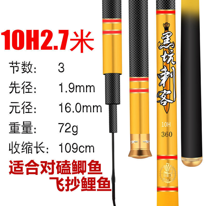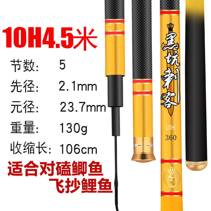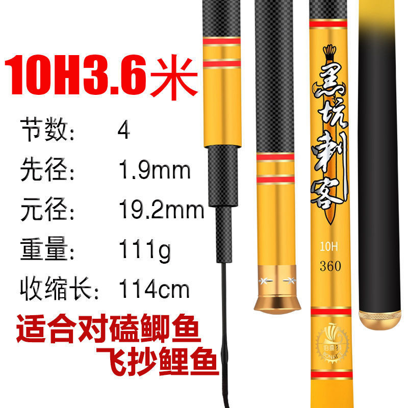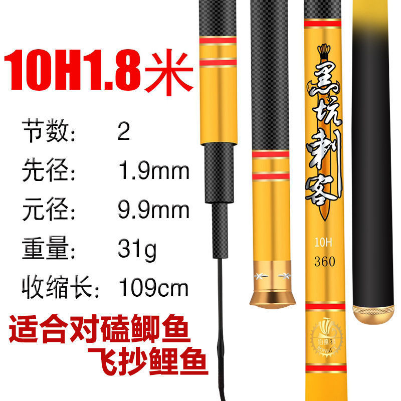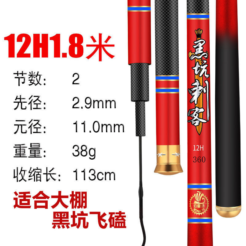 Ультралегкое ультрапрочное удилище для ловли карася и тилапии Black Pit 12h, 19-ти секционное, черное.