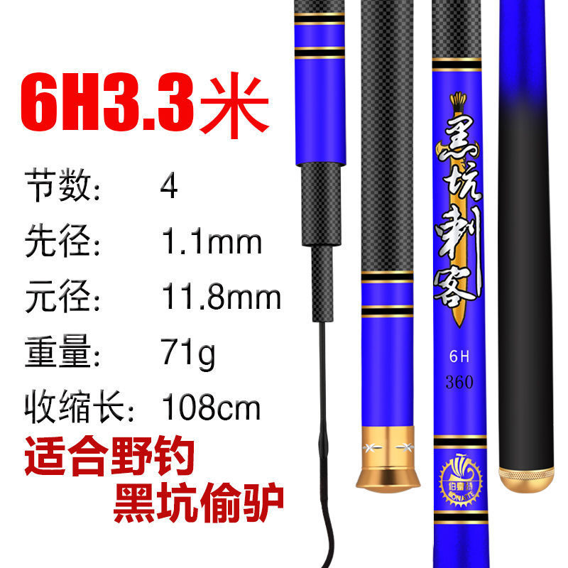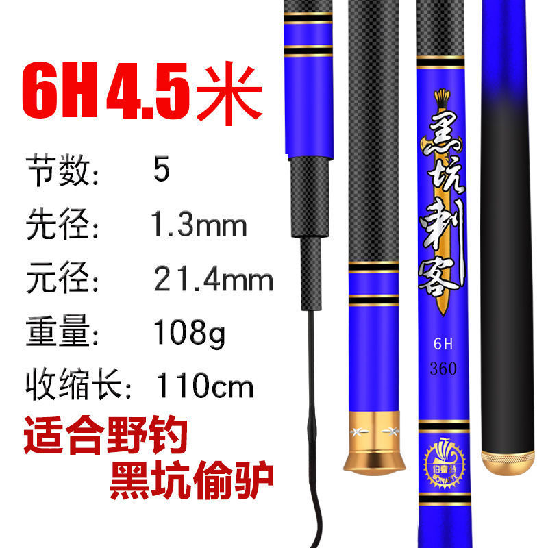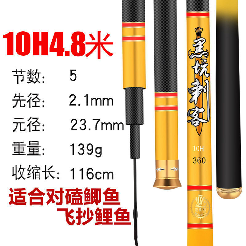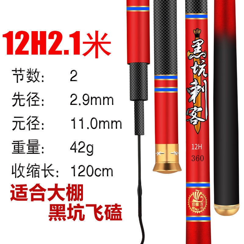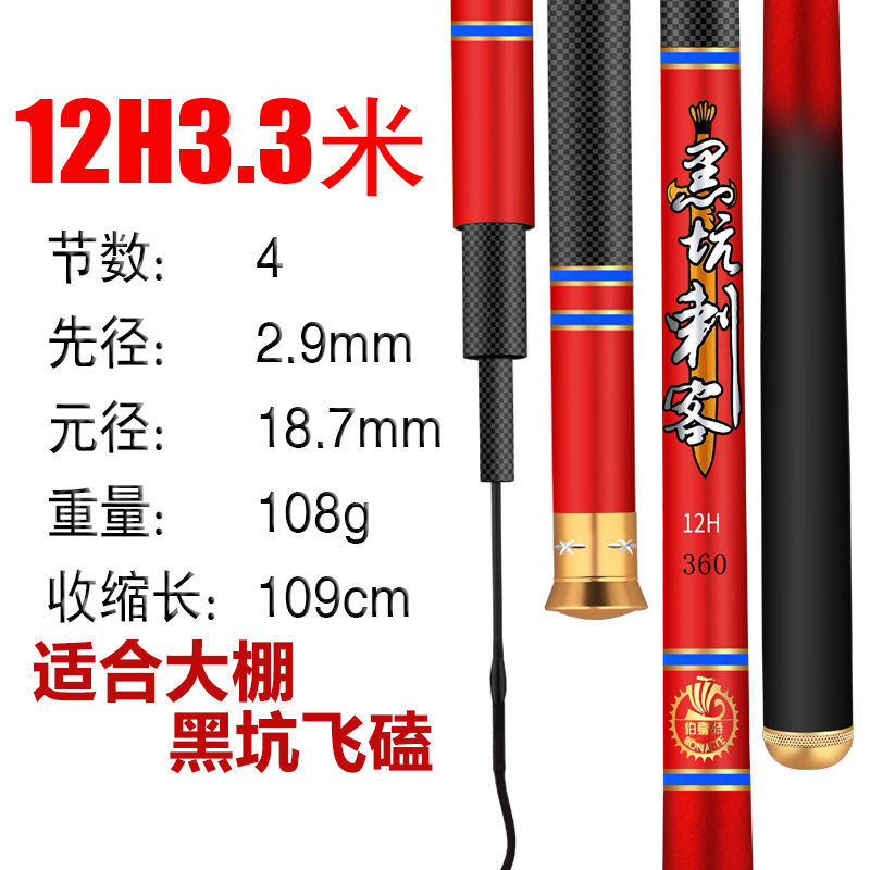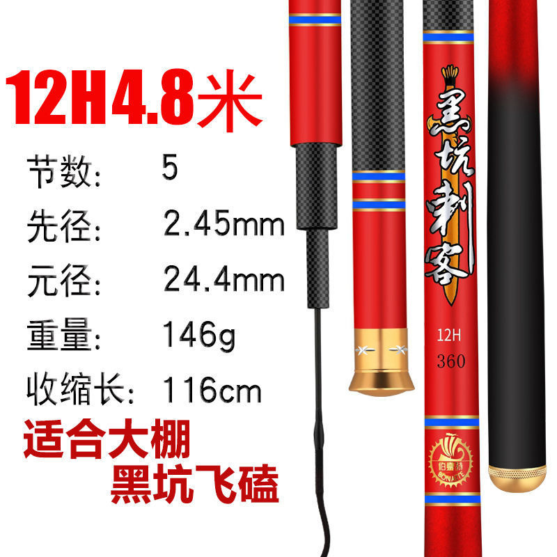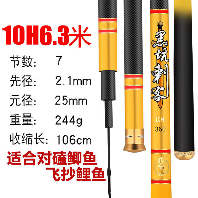 Ультралегкое ультрапрочное удилище для ловли карася и тилапии Black Pit 12h, 19-ти секционное, черное.