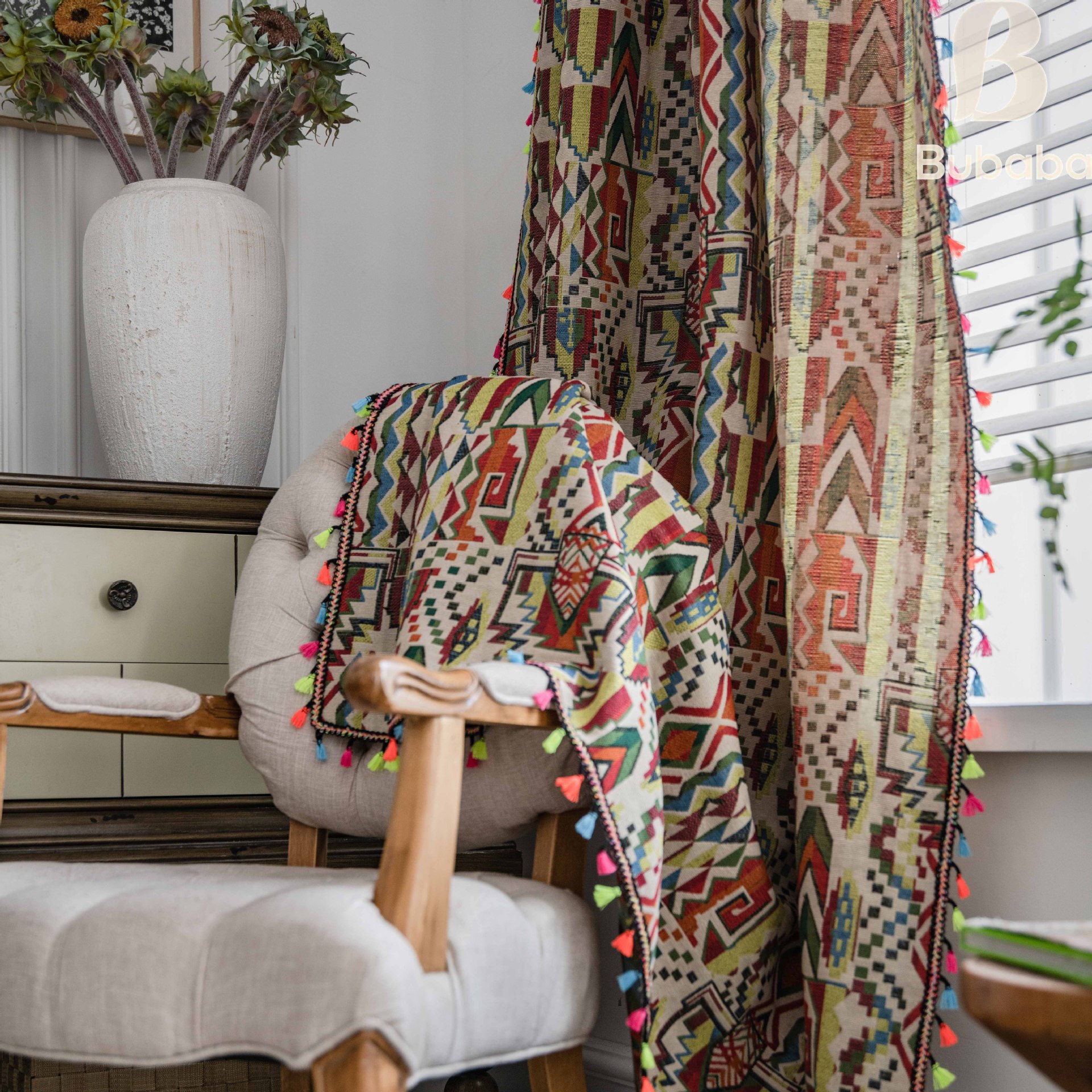 Главная страница > Богемные затемняющие шторы для кухонных дверей, балконных окон в гостиной, оптовые прозрачные шторы с геометрическими узорами.