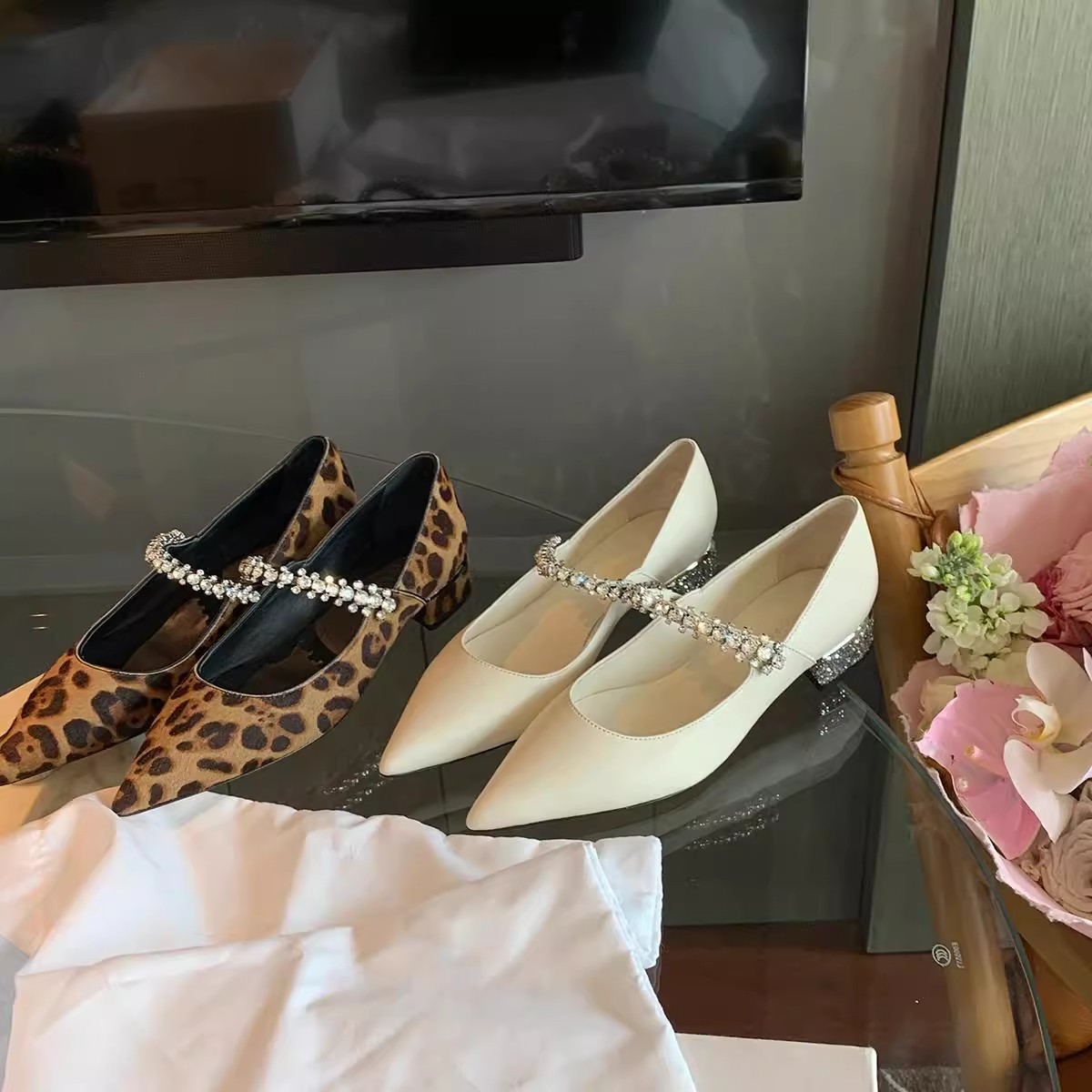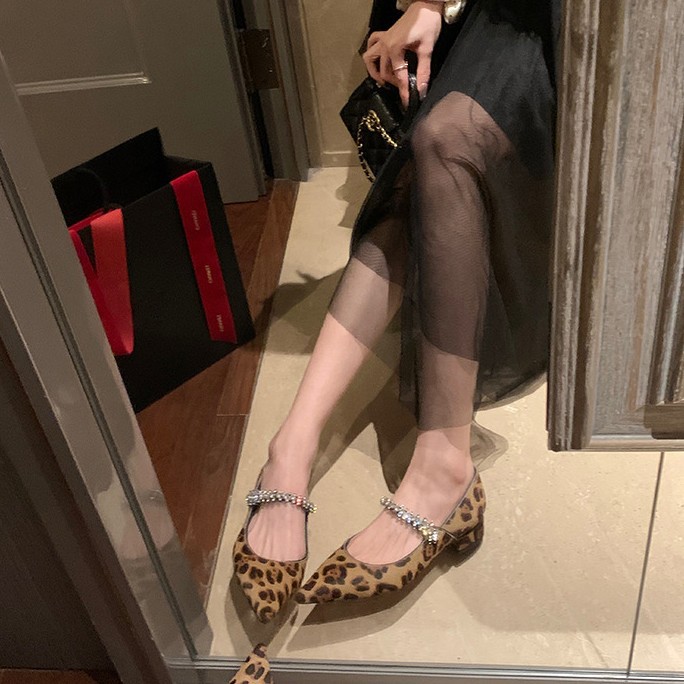 Главная страница > Овчинная версия ~ Виноградная мама та же маленькая заостренная сверкающая ремень с диким леопардовым принтом неглубокая туфля на каблуке женская весна