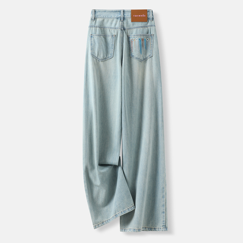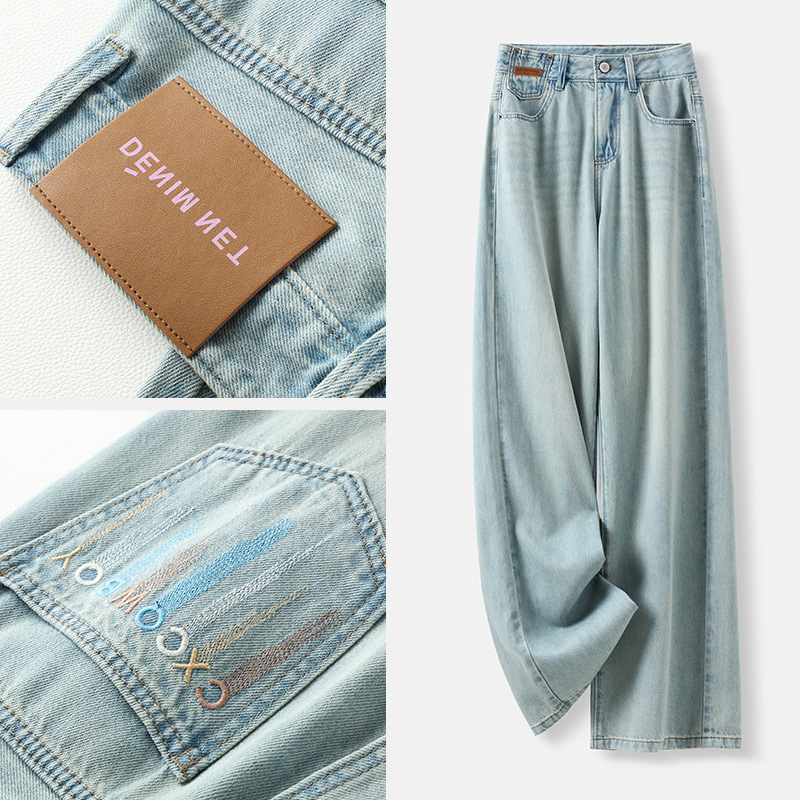 Главная страница > Tiansi узкая версия широкие джинсы женские с высокой талией 2025 новая летняя тонкая вышивка свободные тонкие свободные свободные брюки