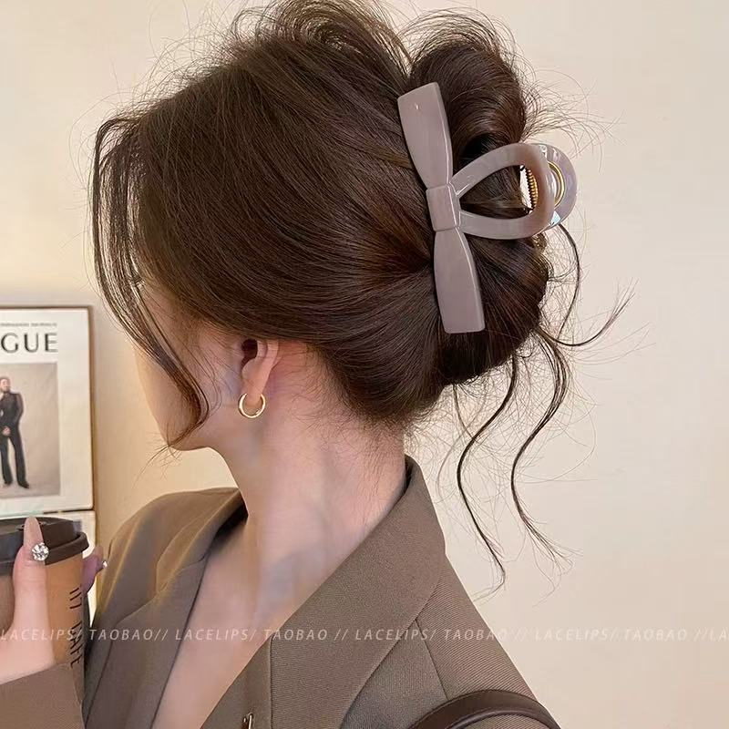 Главная страница > Премиум Чувство Шоколадно-коричневый минималистский бант царапает большой акула заколка для волос женская задняя голова 2024 новые волосы