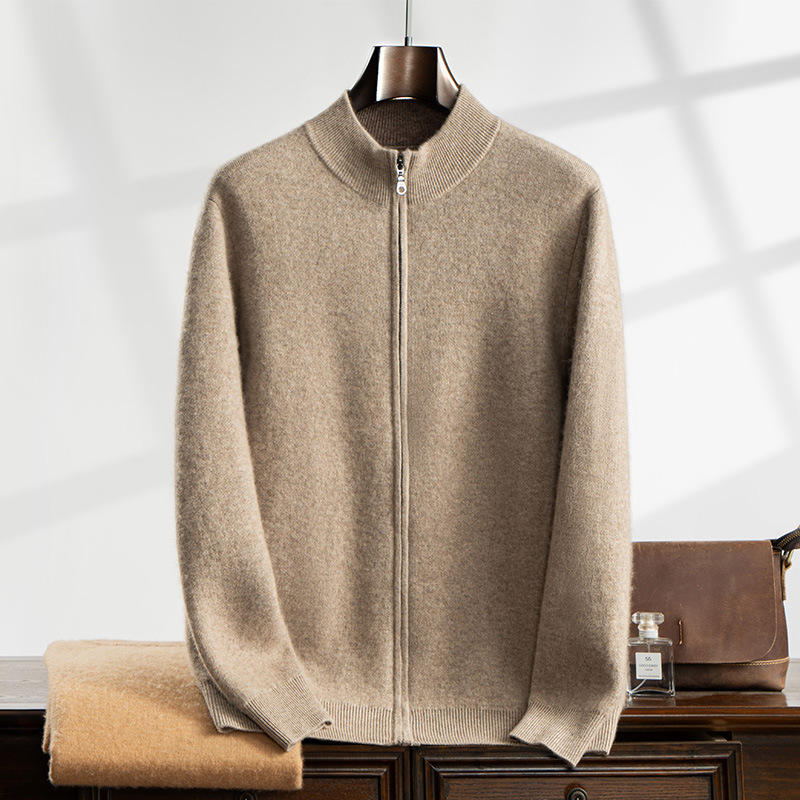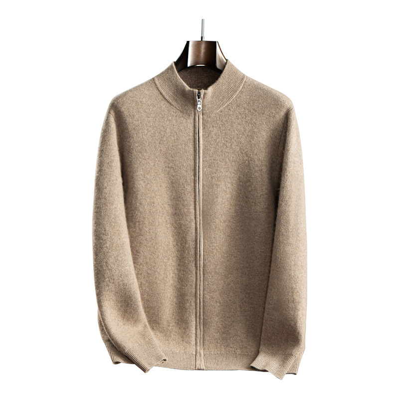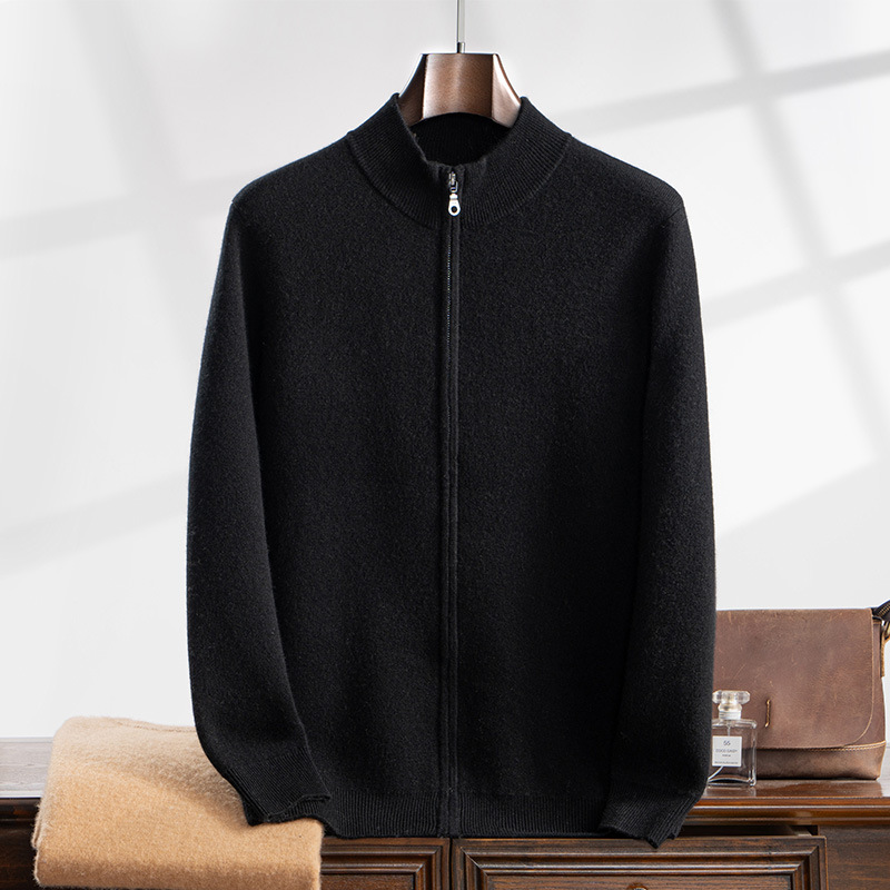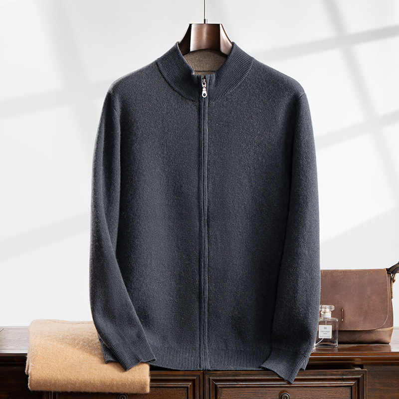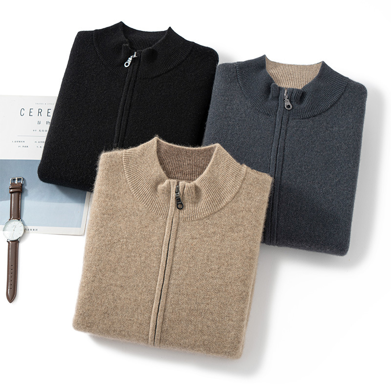 Главная страница > 2024 осень и зима новый кашемир слой воздуха утолщен полутолщен круглый воротник трикотажный кардиган на молнии теплый топ мужской