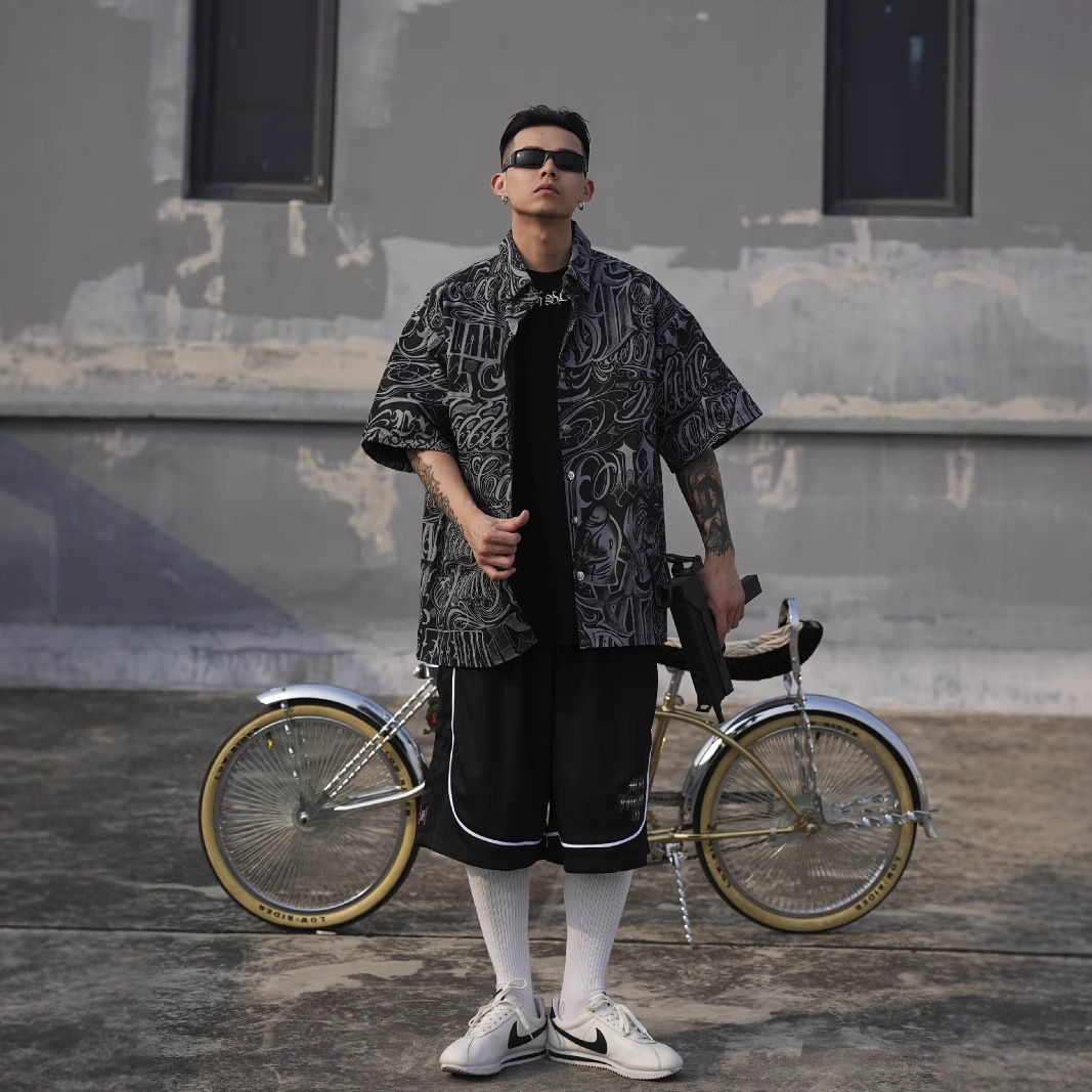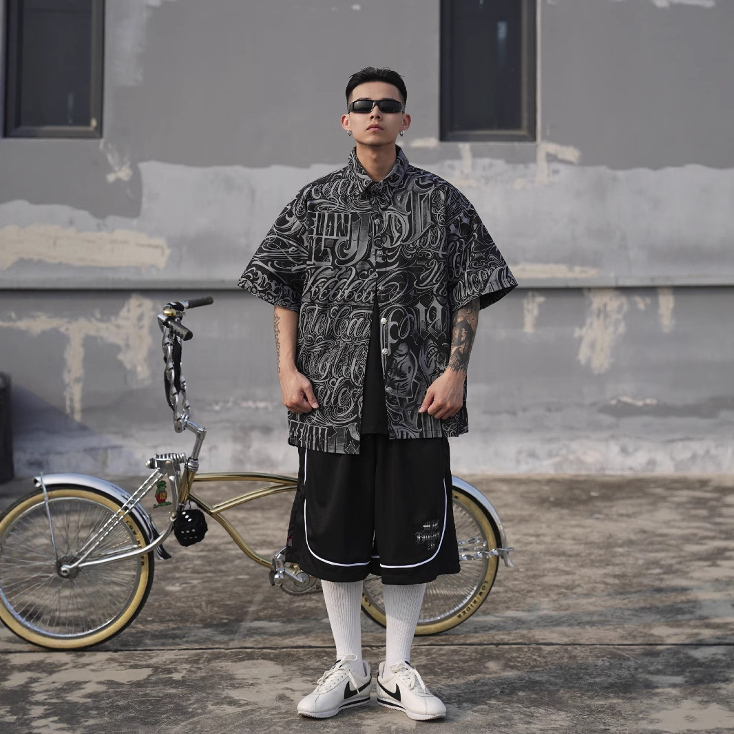 Главная страница > Рубашка в стиле чикано, в стиле гангстеров Западного побережья США, мужская одежда больших размеров, оверсайз, прочная рабочая одежда, с цветочным принтом по всей поверхности