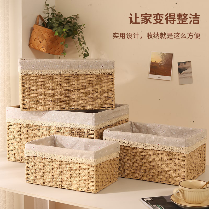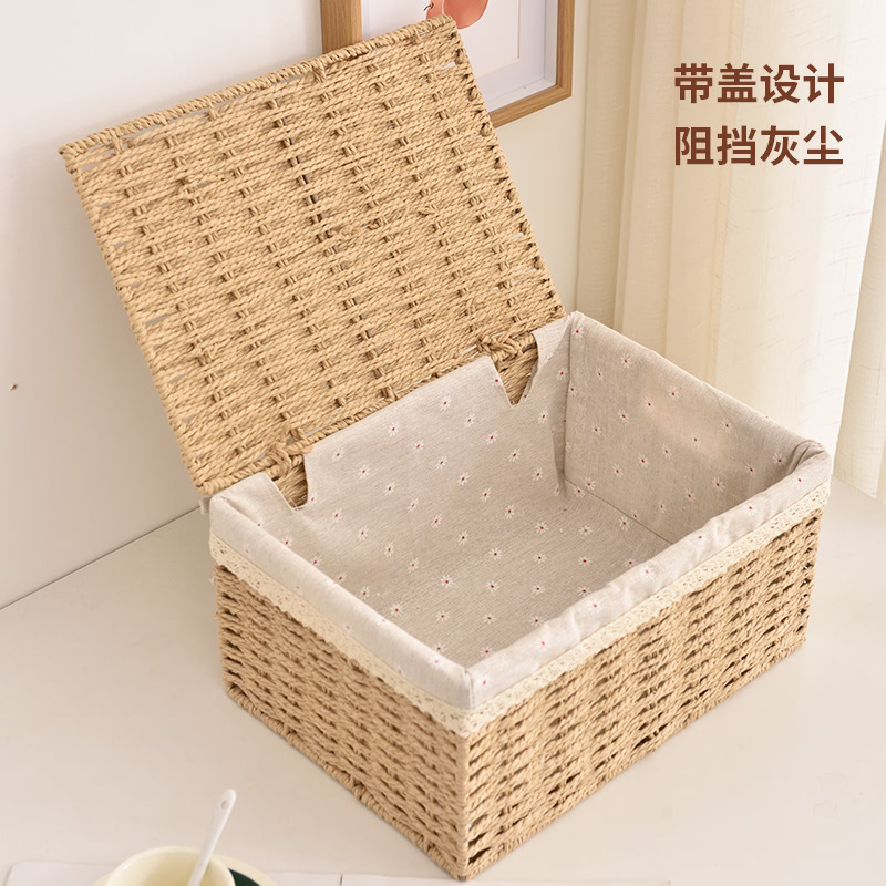 Настольная тканая корзина для хранения с крышкой бытовой большой ящик для хранения в виде ротанга ящик для хранения всякой закуски игрушки солома