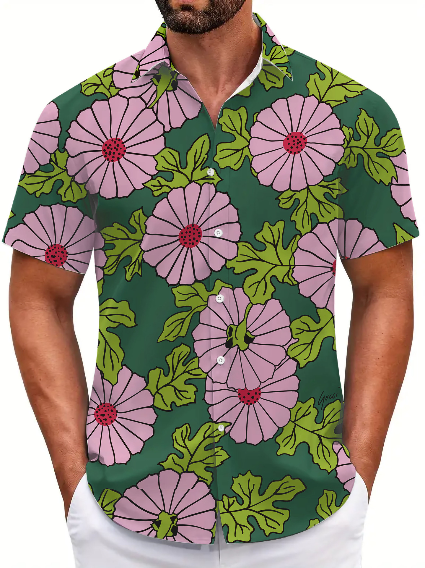 2025 лето новый приморский гавайский цветочный рубашка мужской пятирастворимый рукав быстрый сухой пляж с короткими рукавами цветочная рубашка для мужчин и женщин