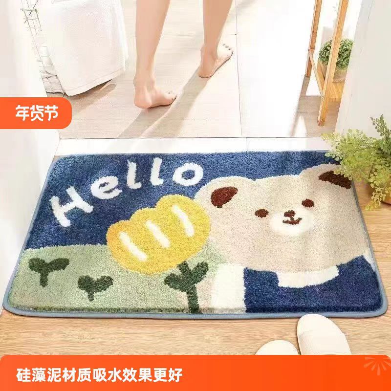 Напольные коврики из искусственного кашемира с мультяшным медведем для домашней ванной комнаты, нескользящие и грязеотталкивающие напольные коврики для входа, легкие в уходе дверные коврики, доступные для оптовой продажи