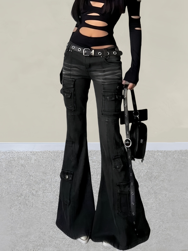 Главная страница > Американский ретро мульти-карманные Y2K женские микро-рог джинсы горячие девушки брюки облегка women jeans