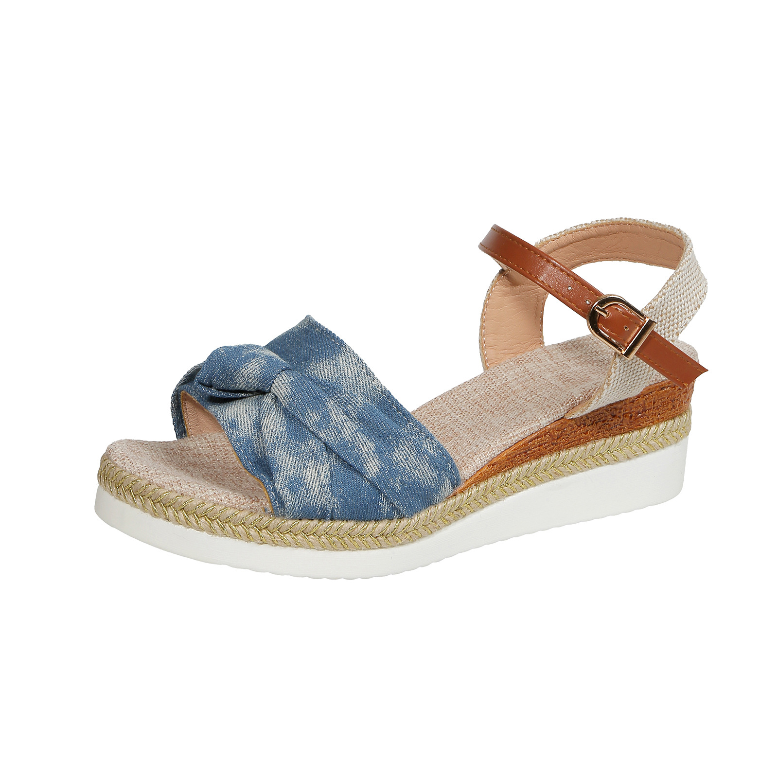 В наличии Cross-Border Trade 2023 Новые сандалии Женские подошва с бантом из пеньковой веревки Легкая повседневная женская обувь Рыбий рот Толстая подошва Круто