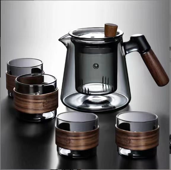 Главная страница > Чайник из стекла с деревянной ручкой для заваривания чая, бытовой чайный набор, небольшой офисный чайник с разделением на чай и воду, термостойкое стекло для заваривания чая.