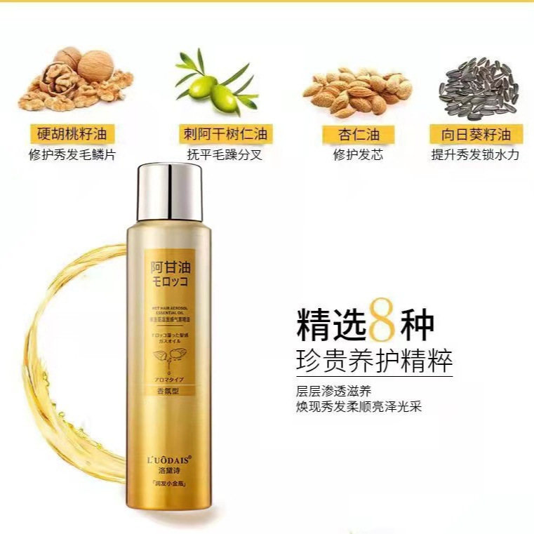 Новый продукт Luodeshi Марокканский спрей для влажных волос с эфирным маслом улучшает вьющиеся, поврежденные и спутанные волосы, несмываемый кондиционер.