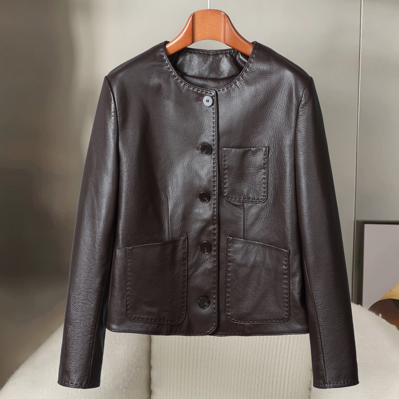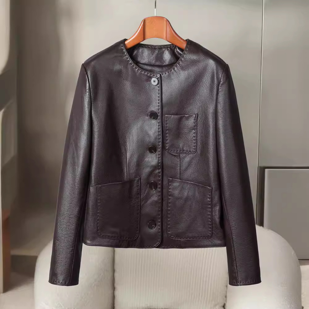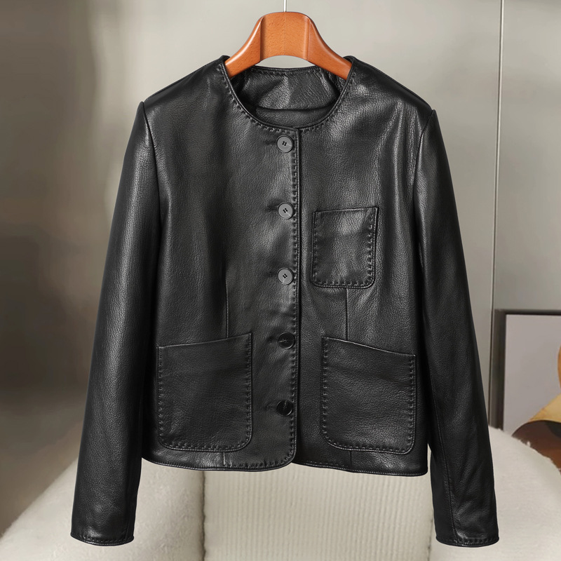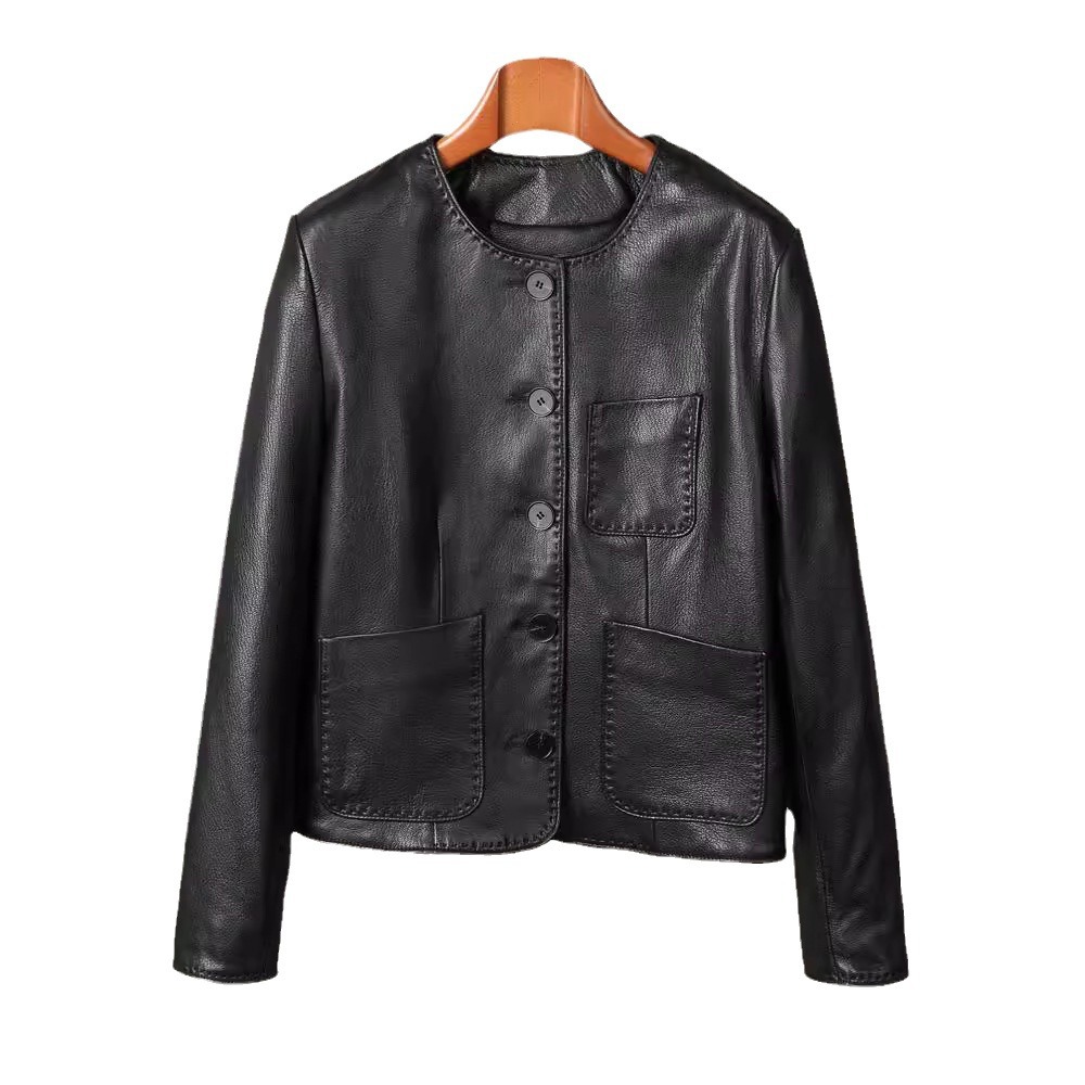 Главная страница > Haining весна и осень новое пальто из натуральной кожи в стиле Шанель, женское короткое пальто из овчины, Повседневная тонкая кожаная куртка с круглым вырезом, модная