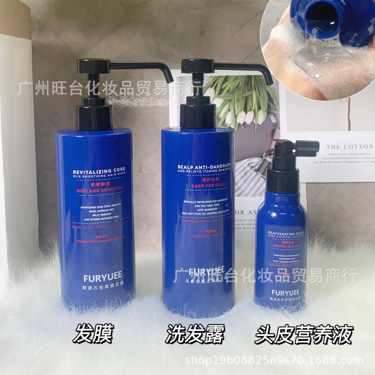 Шампунь, кондиционер, маска для волос и питательный раствор Fuyue против перхоти, глубоко улучшают состояние кожи головы, успокаивают и контролируют выделение жира, обеспечивают питание кожи головы.