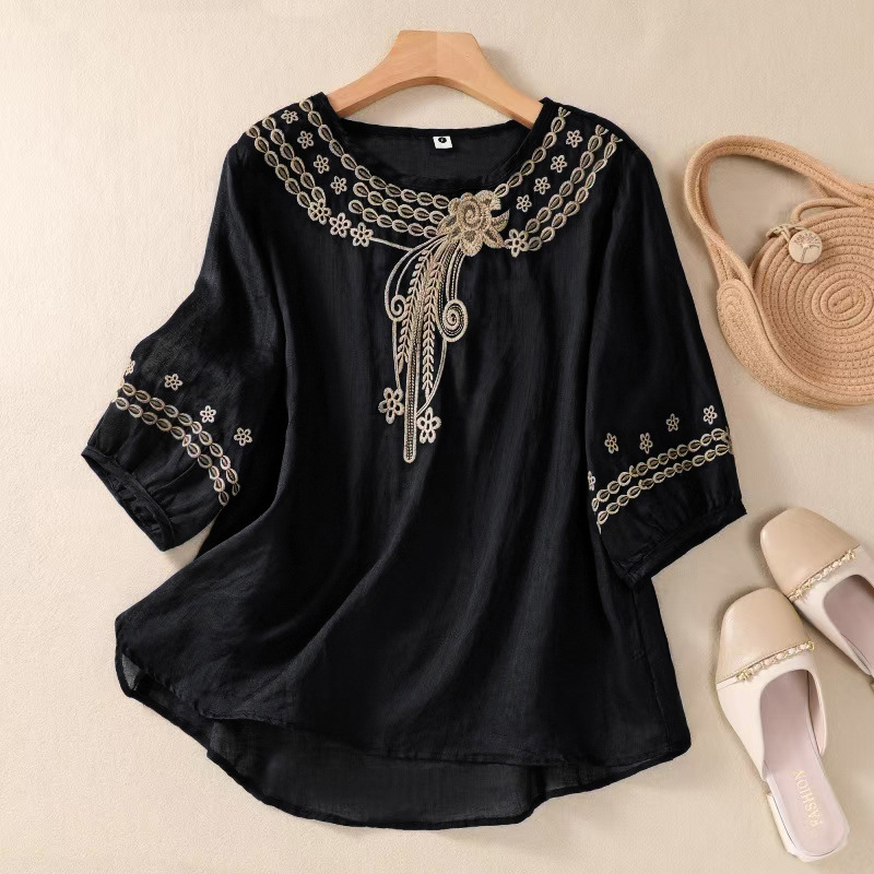 Главная страница > Новая летняя винтажная рубашка из тонкого хлопка и льна 100%, женская футболка ручной работы с художественной вышивкой, элегантный тонкий Топ