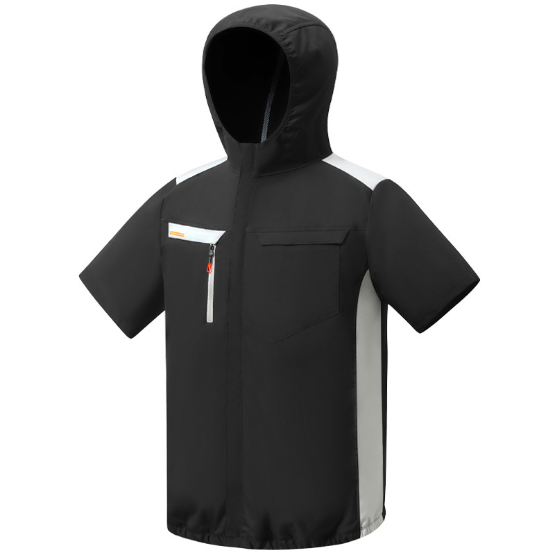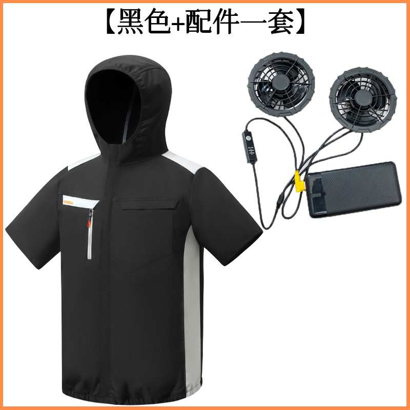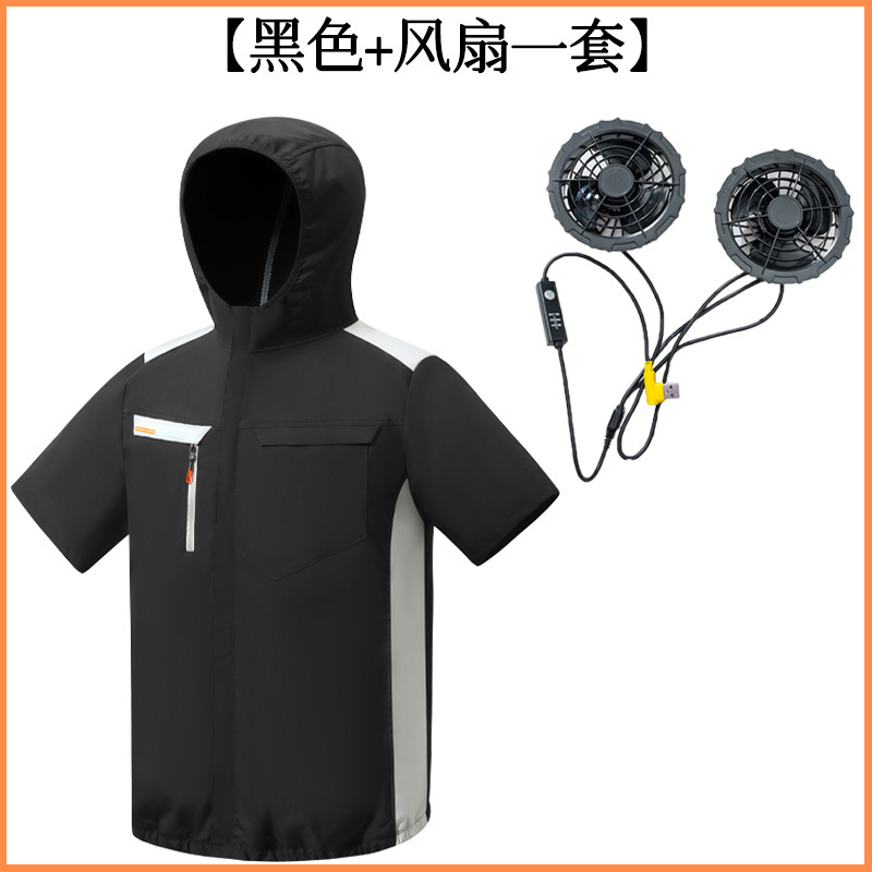 [Короткий рукав с капюшоном] Черный + 2 вентилятора (включая кабели)