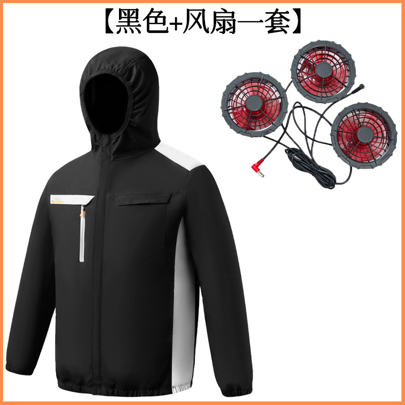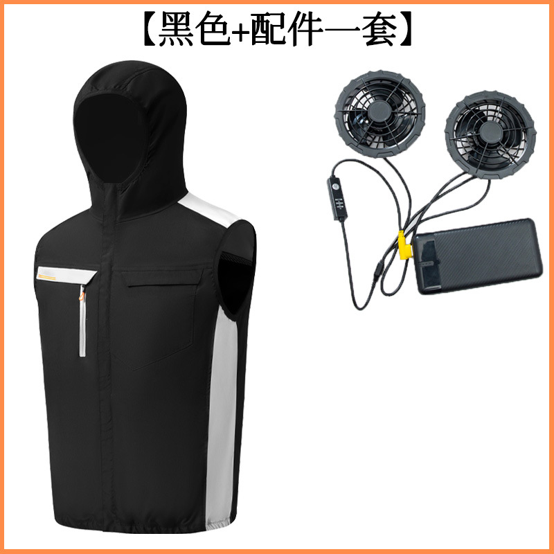 [Жилет с капюшоном] Черный + 2 вентилятора (включая кабели)