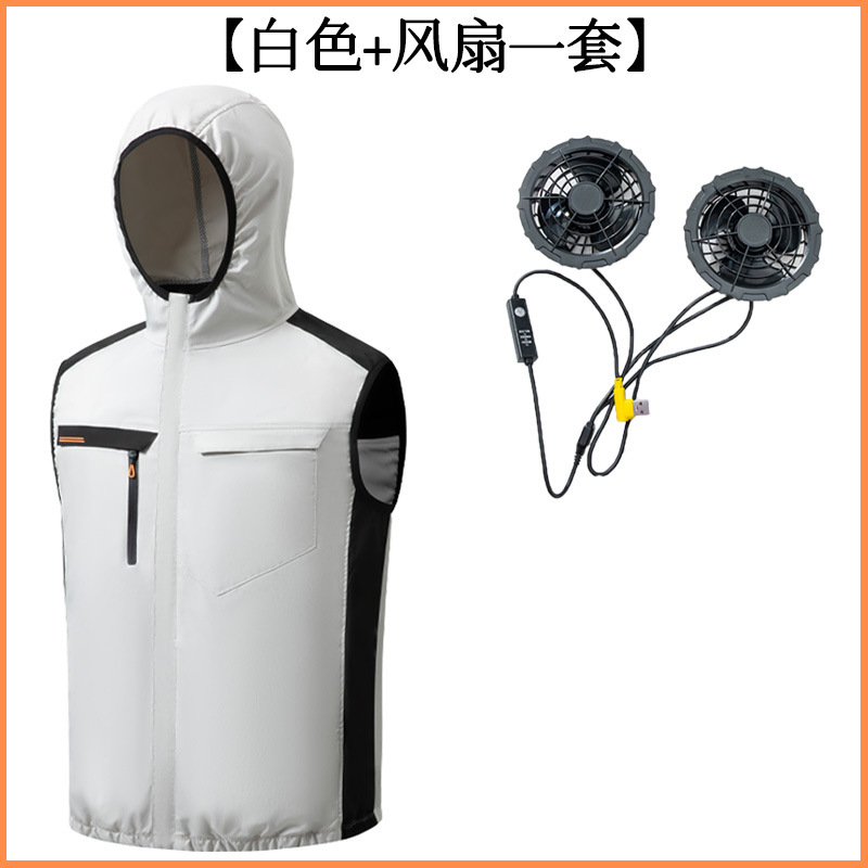 [Жилет с капюшоном] Белый + 2 вентилятора (включая кабели)