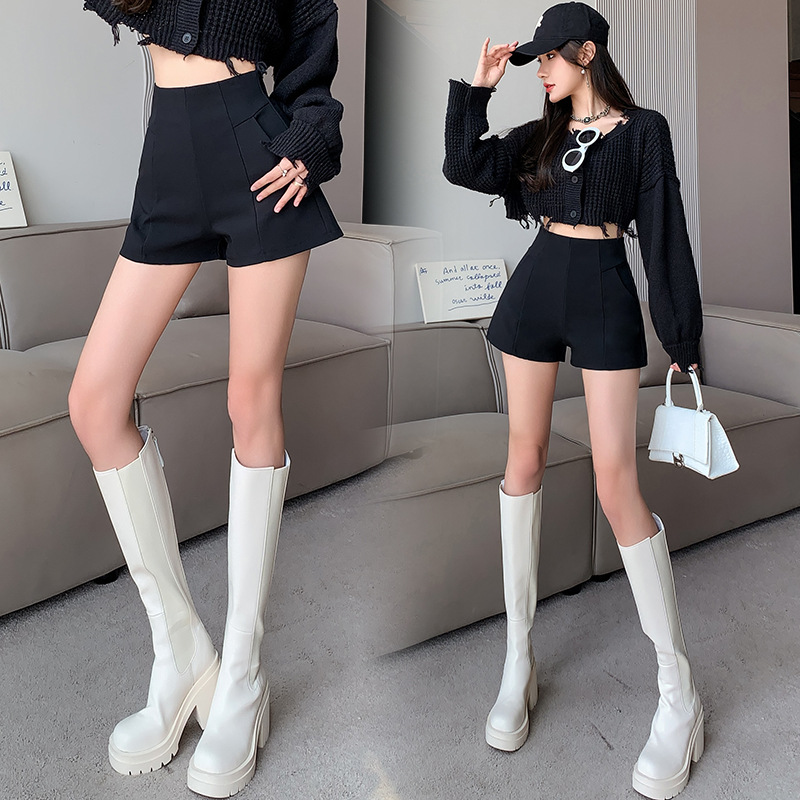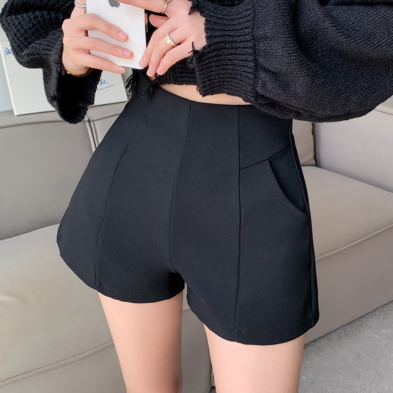 Главная страница > Черные повседневные Костюмные шорты, женская верхняя одежда 2024, весна и осень, новые утягивающие брюки А-силуэта с высокой талией, широкие брюки-ботинки