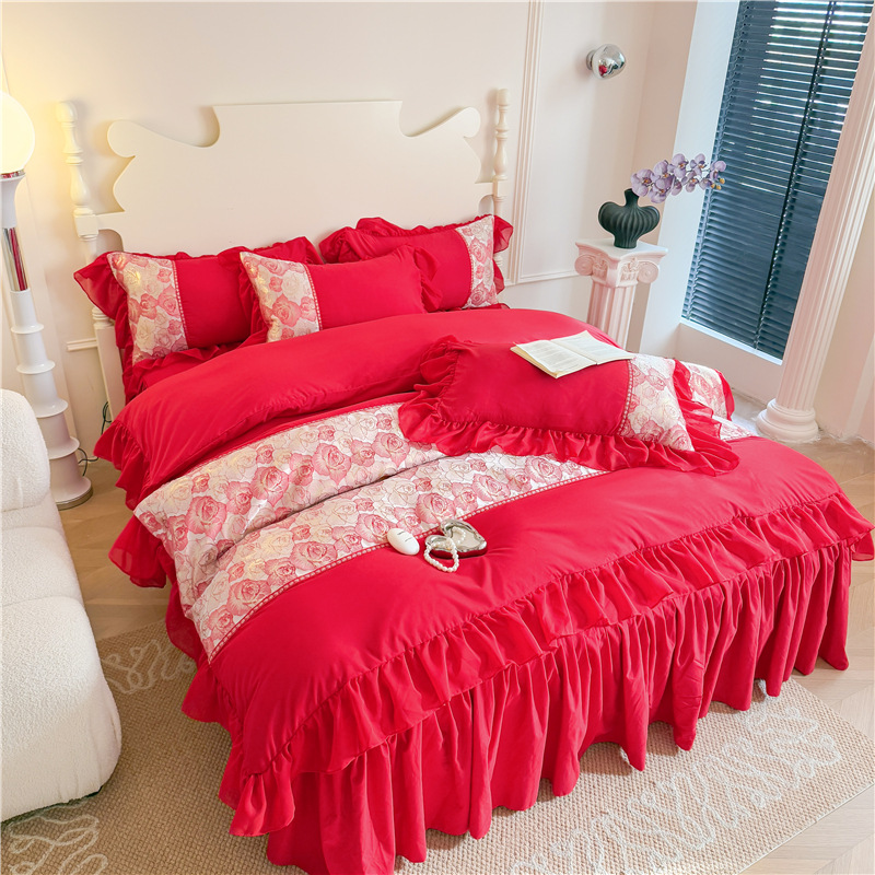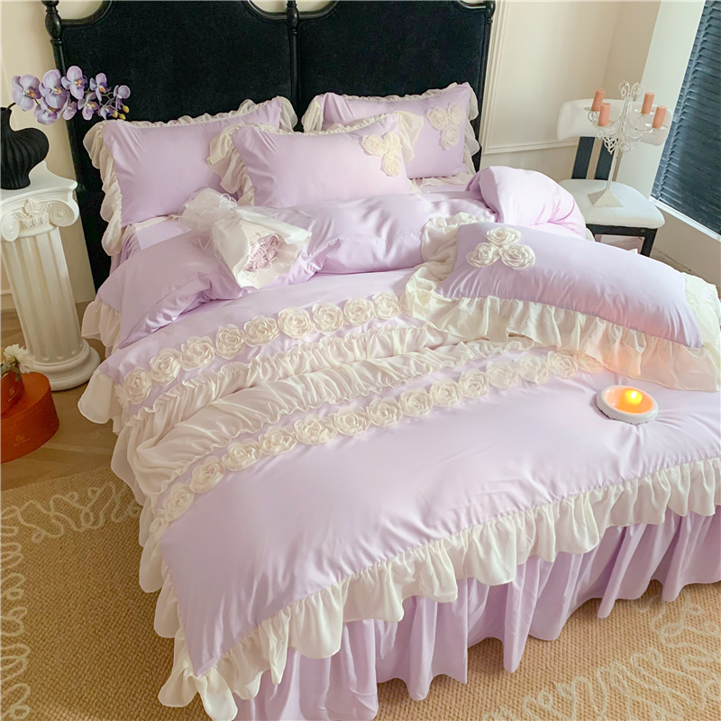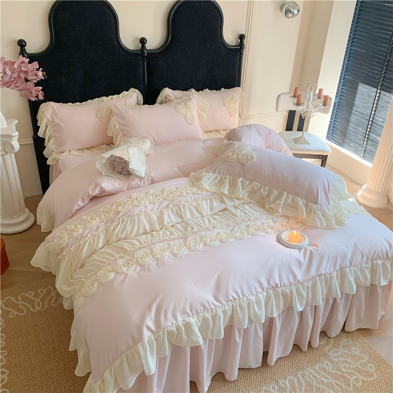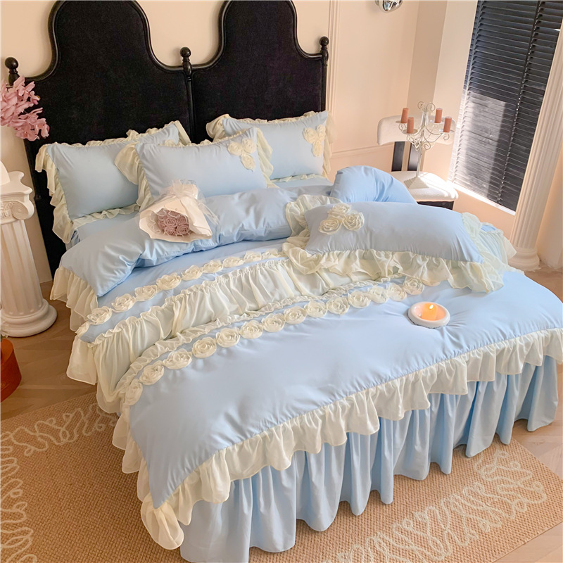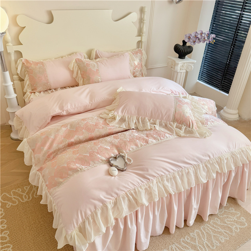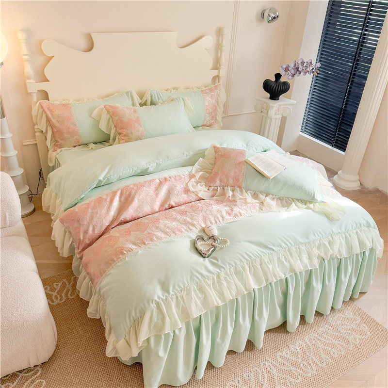 Главная страница > Корейская принцесс ветреная хлопчатобумажная юбка из четырех частей с рельефным жаккардовым одеялом юбка красивая фея постельное белье комплект