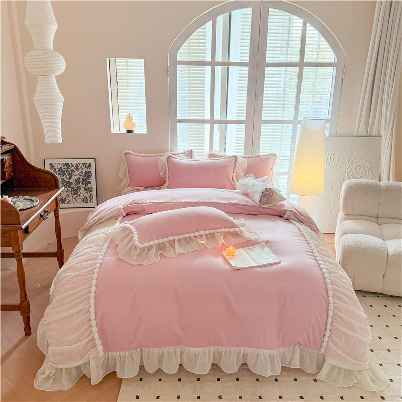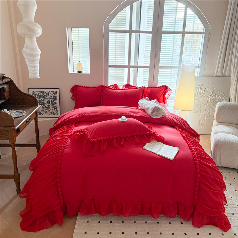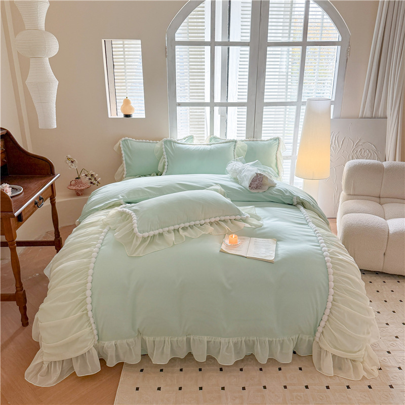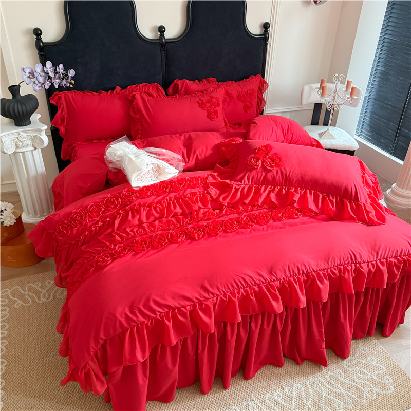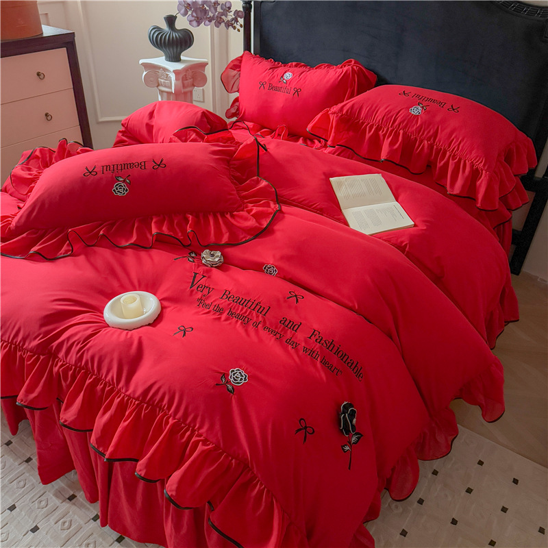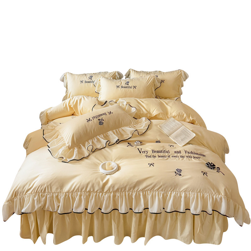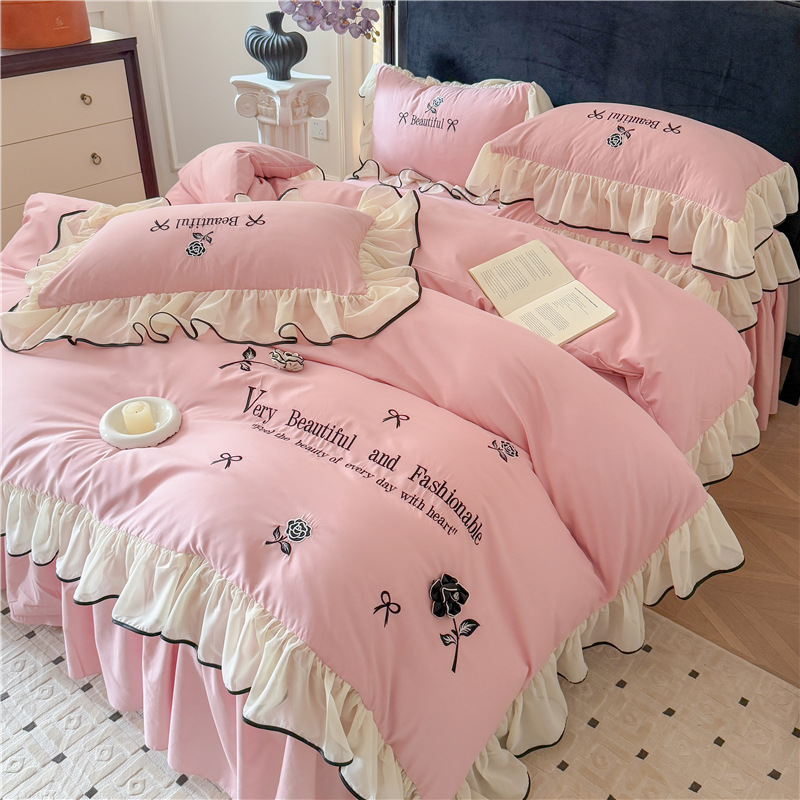 Главная страница > Корейская принцесс ветреная хлопчатобумажная юбка из четырех частей с рельефным жаккардовым одеялом юбка красивая фея постельное белье комплект