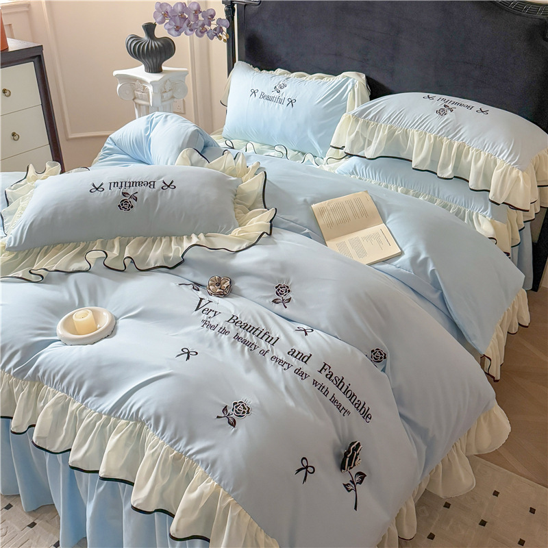 - Комплект юбки для кровати 2.0 из четырех предметов (одеяло 220*240, юбка для кровати 200*220, наволочка 48*74*2)