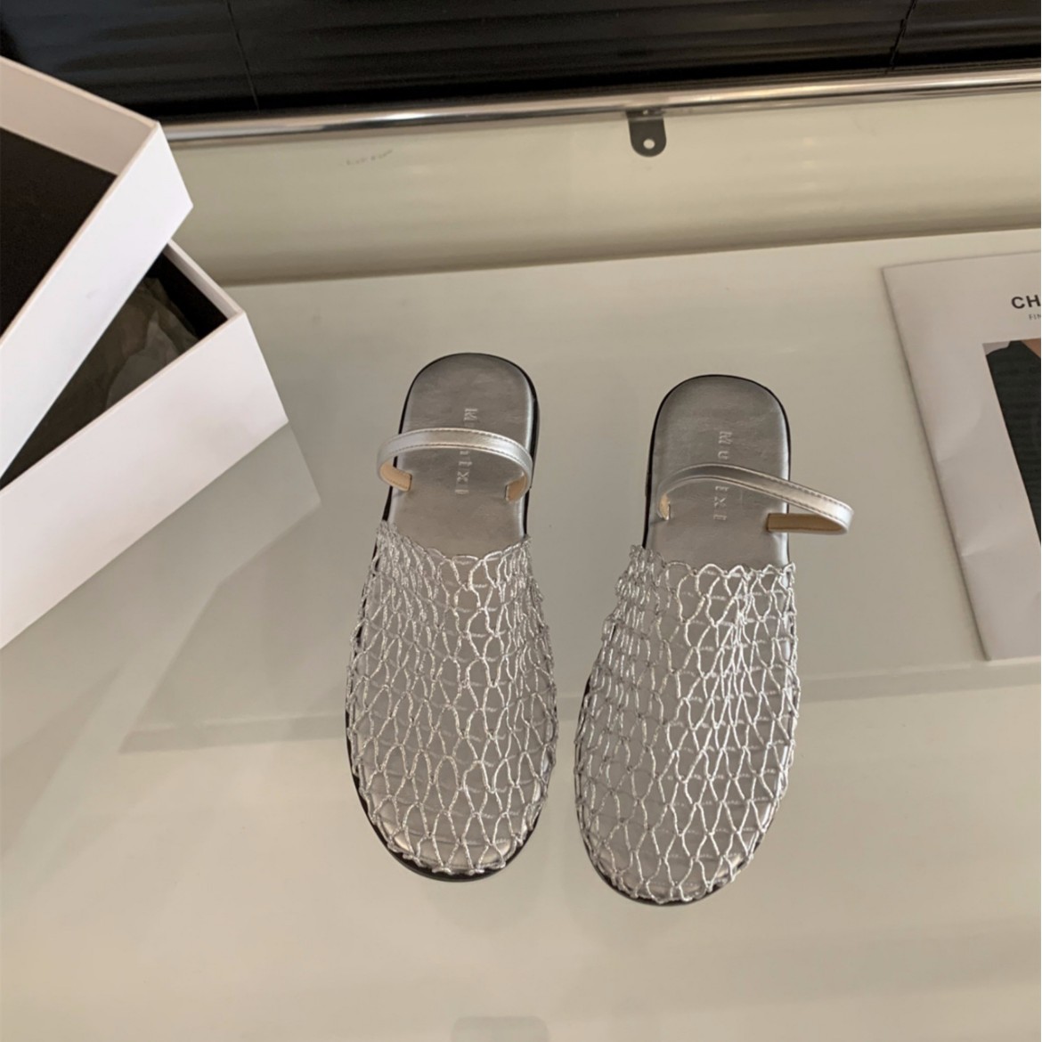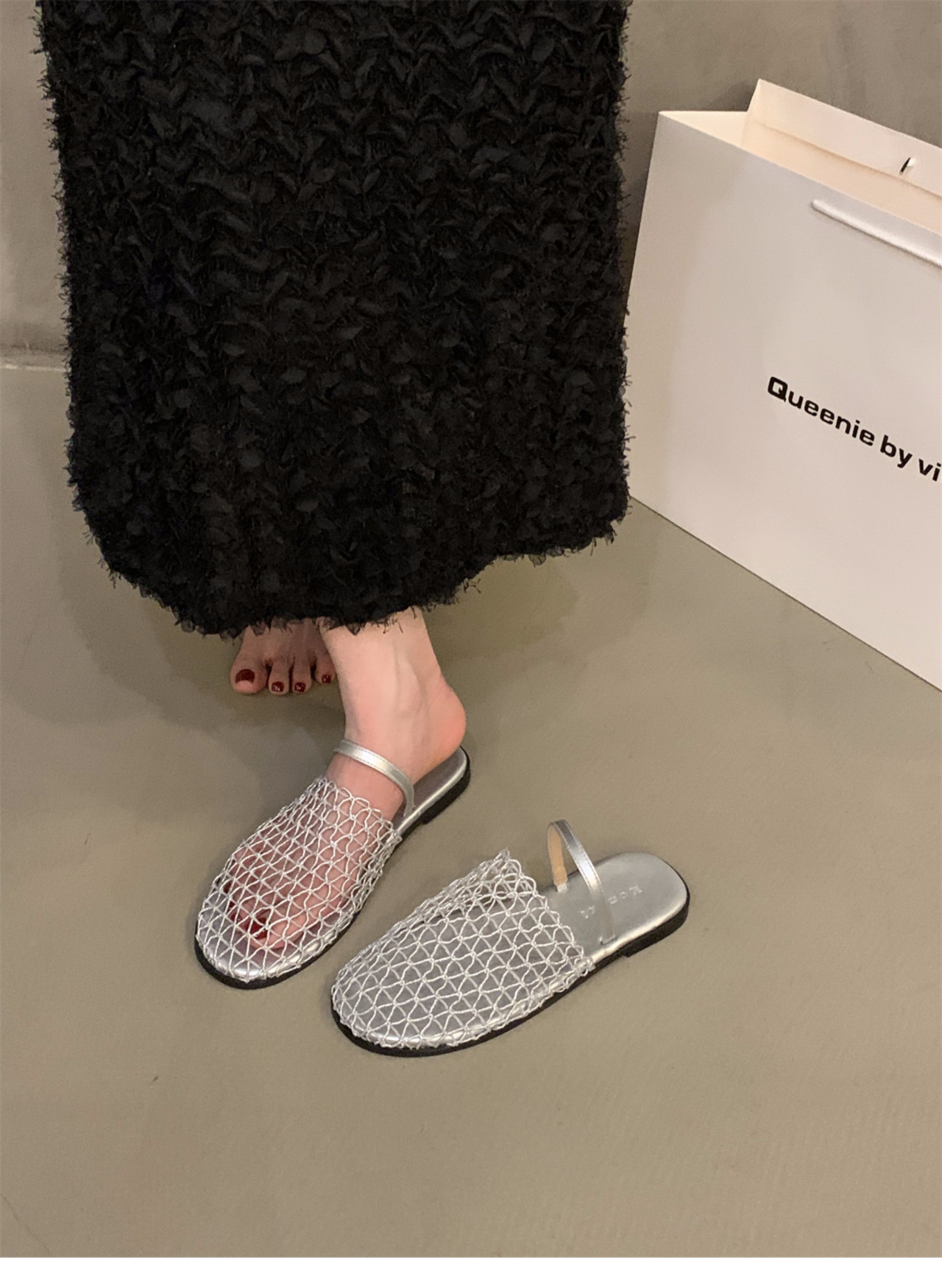 Главная страница > Плоская сетка мода снаружи носить серебряные шлепанцы половинные тапочки женская обувь 2005 новый летний сандалии с мягким дном