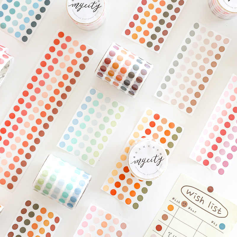 Лента васи в горошек цвета Моранди, базовый блокнот, цветная наклейка в горошек, круглая отметка, материал для заметок в блокноте