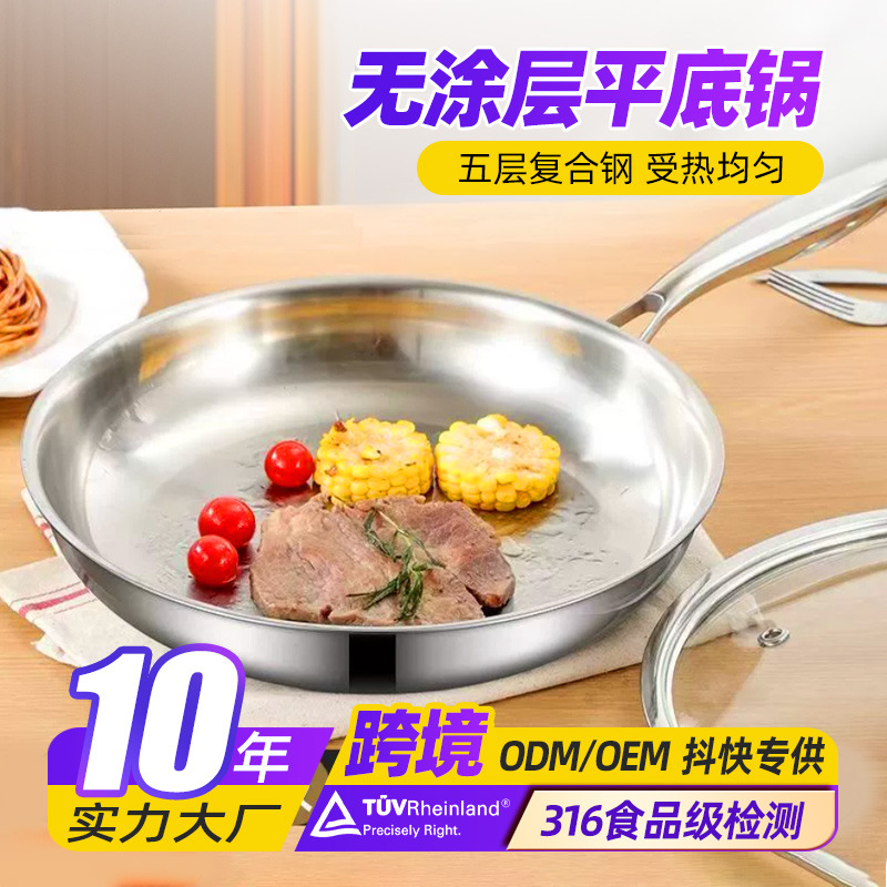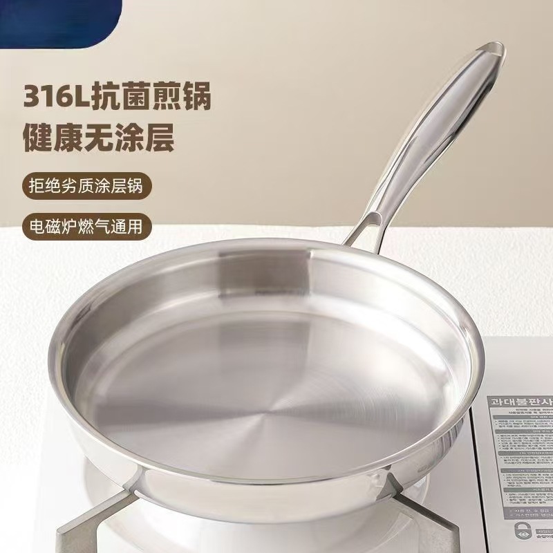 Главная страница > Сковорода с антипригарным покрытием без покрытия, из нержавеющей стали 304, с плоским дном, для домашнего использования, для жарки стейков, вок, сковорода из нержавеющей стали