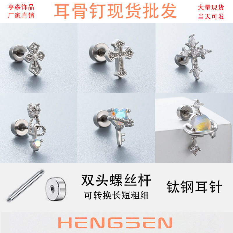 Главная страница > Цветные цирконовые ушные гвозди Henson любовь ключ кулон винт титановые стальные серьги высокого уровня перфорированные серьги