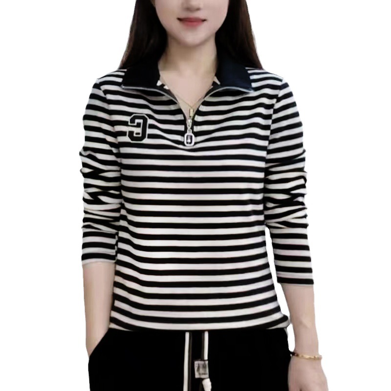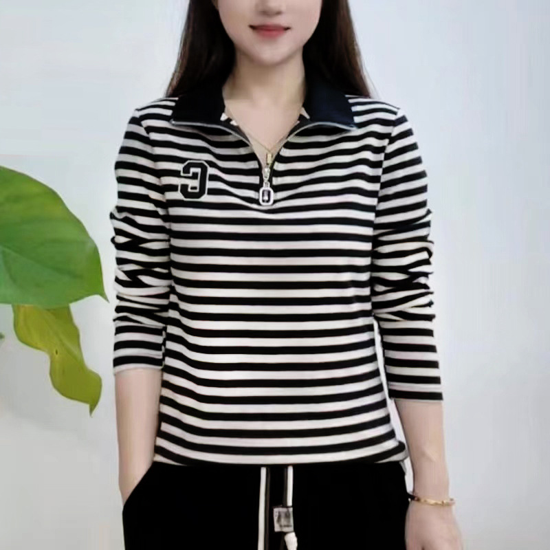 Главная страница > 2023 популярная полосатая футболка с длинными рукавами для женщин, весна-осень 2023, новая рубашка-поло для мам среднего возраста, нижняя рубашка, топ