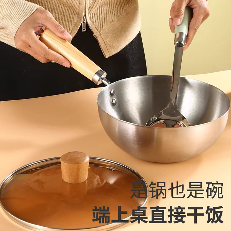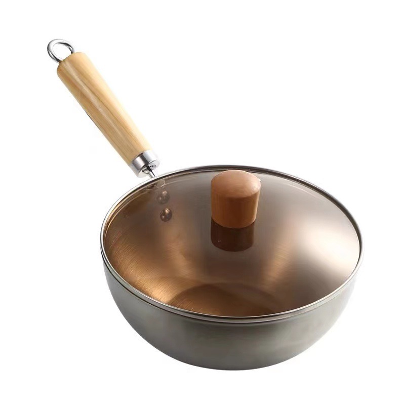Главная страница > Небольшой вок из нержавеющей стали утолщенный суп без покрытия кастрюля кастрюля индукционная плита газовая плита для одного человека жареная кастрюля