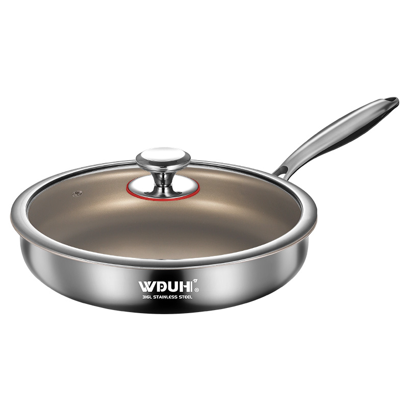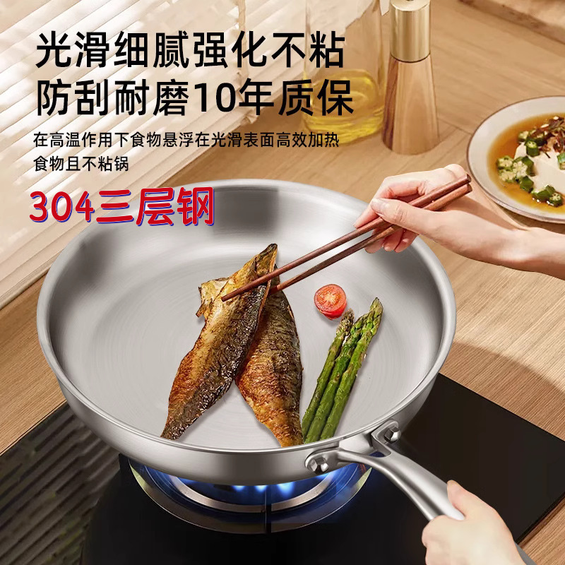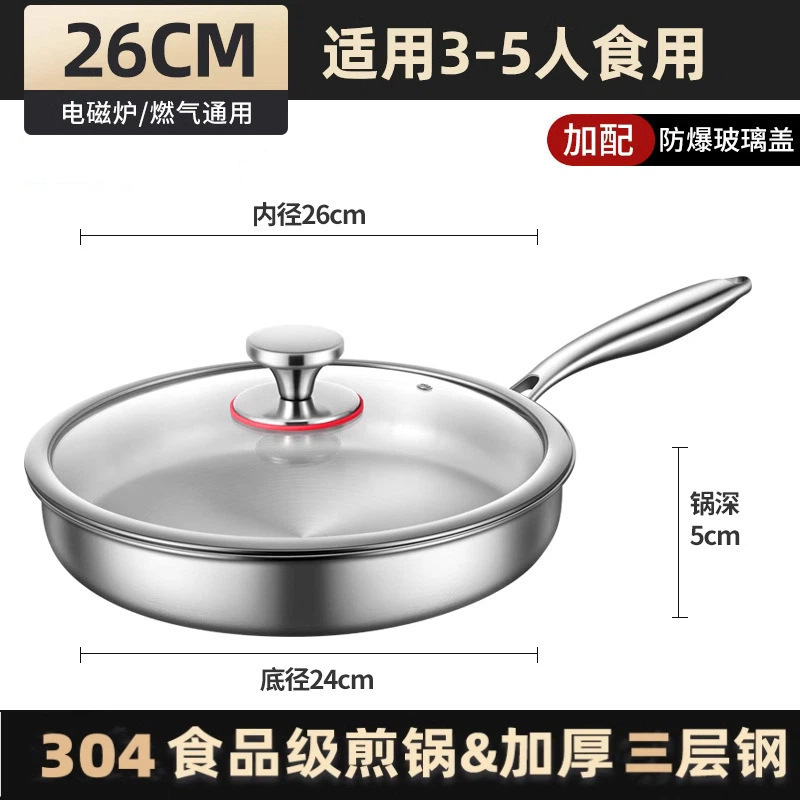 Главная страница > Трехслойная стальная сковорода без заклепок, очень толстая сковорода из нержавеющей стали без покрытия с крышкой, сковорода с антипригарным покрытием.