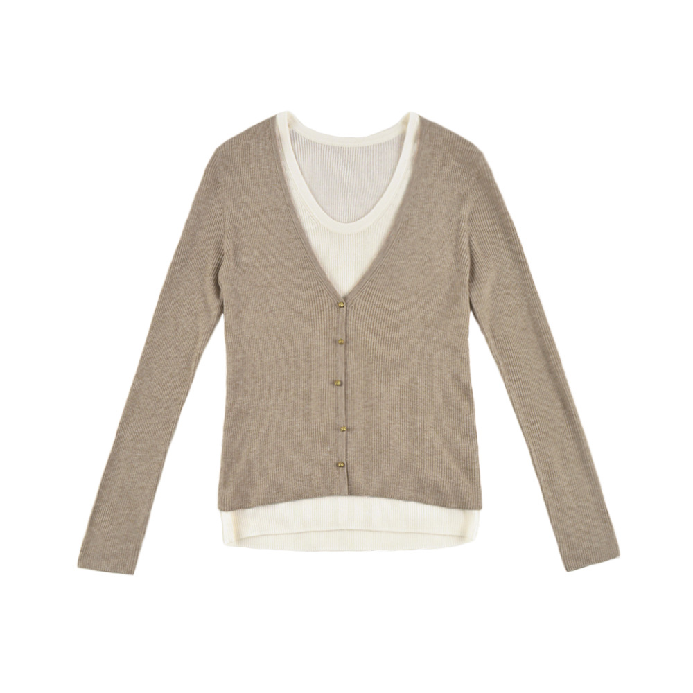 Женский трикотажный пуловер с круглым вырезом, имитирующий двухслойный дизайн, длинный рукав, осень 2025, новый, тонкий, из шерсти.