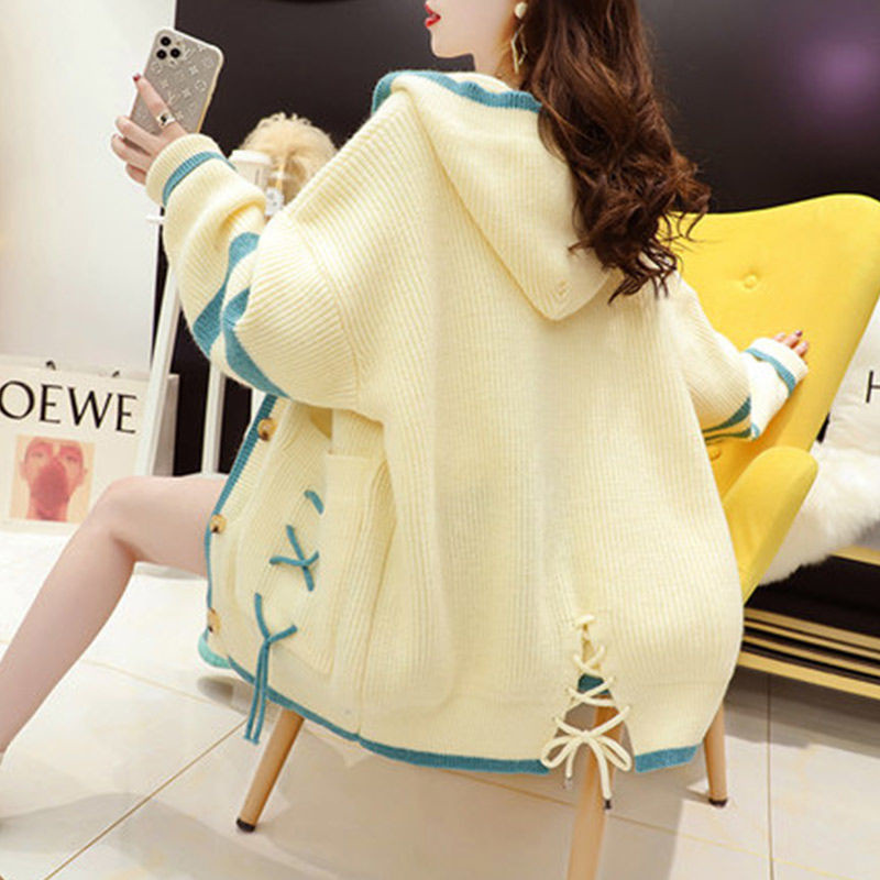 Главная страница > Осенне-зимний свободный свитер с капюшоном, женский модный кардиган в ленивом стиле ретро в Корейском стиле, свободный универсальный топ