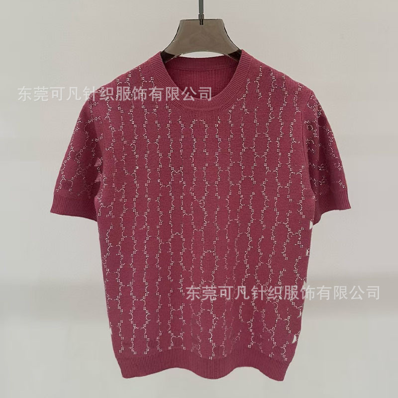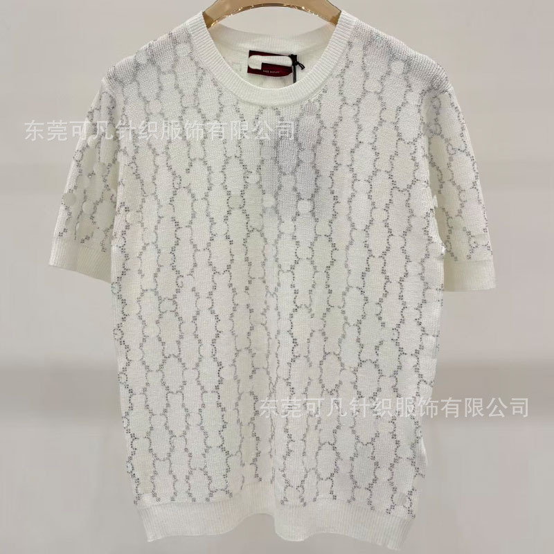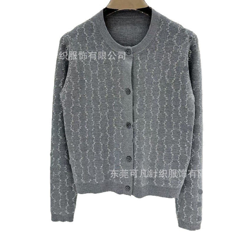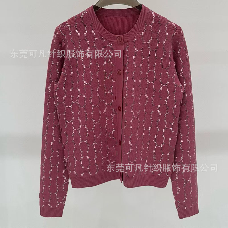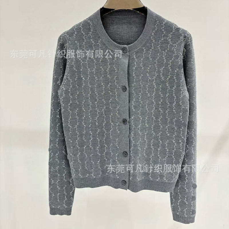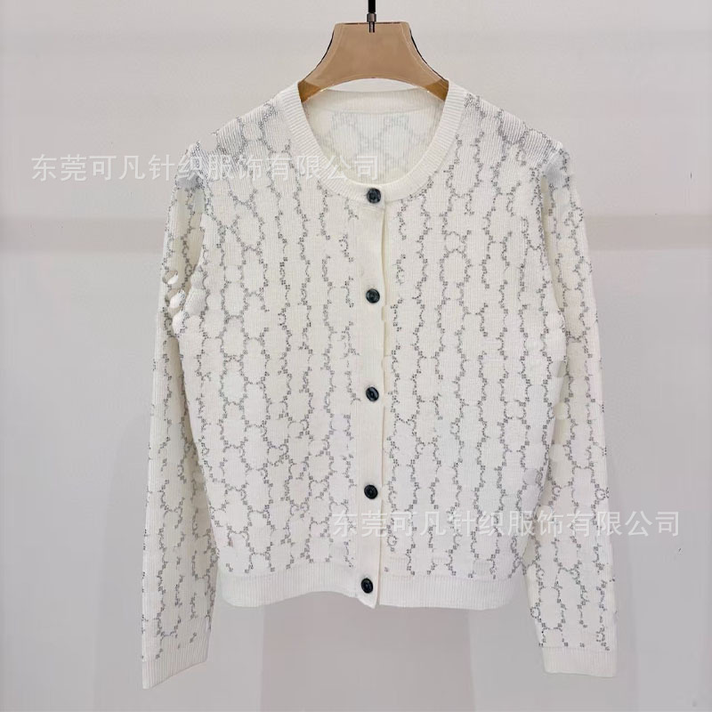 Главная страница > Вязаный кардиган бренда G с круглым вырезом и длинными рукавами и стразами, женский маленький кардиган с двойными стразами G, повседневный универсальный топ.