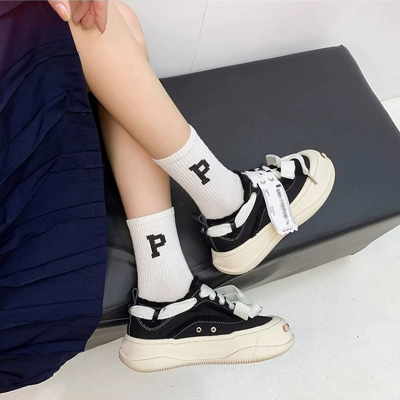 Гонконг 2024 осенние новые высокие холстовые туфли женские толстые подошвы нишу дизайн шутки повседневные туфли маленькие белые туфли