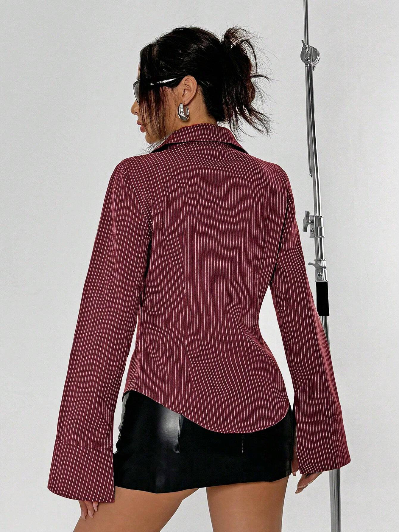 Главная страница > 2025 европейский и американский летний новый кардиган с отворотом и воротником с длинными рукавами рубашка футболка женская тонная внешняя торговля полосатая рубашка