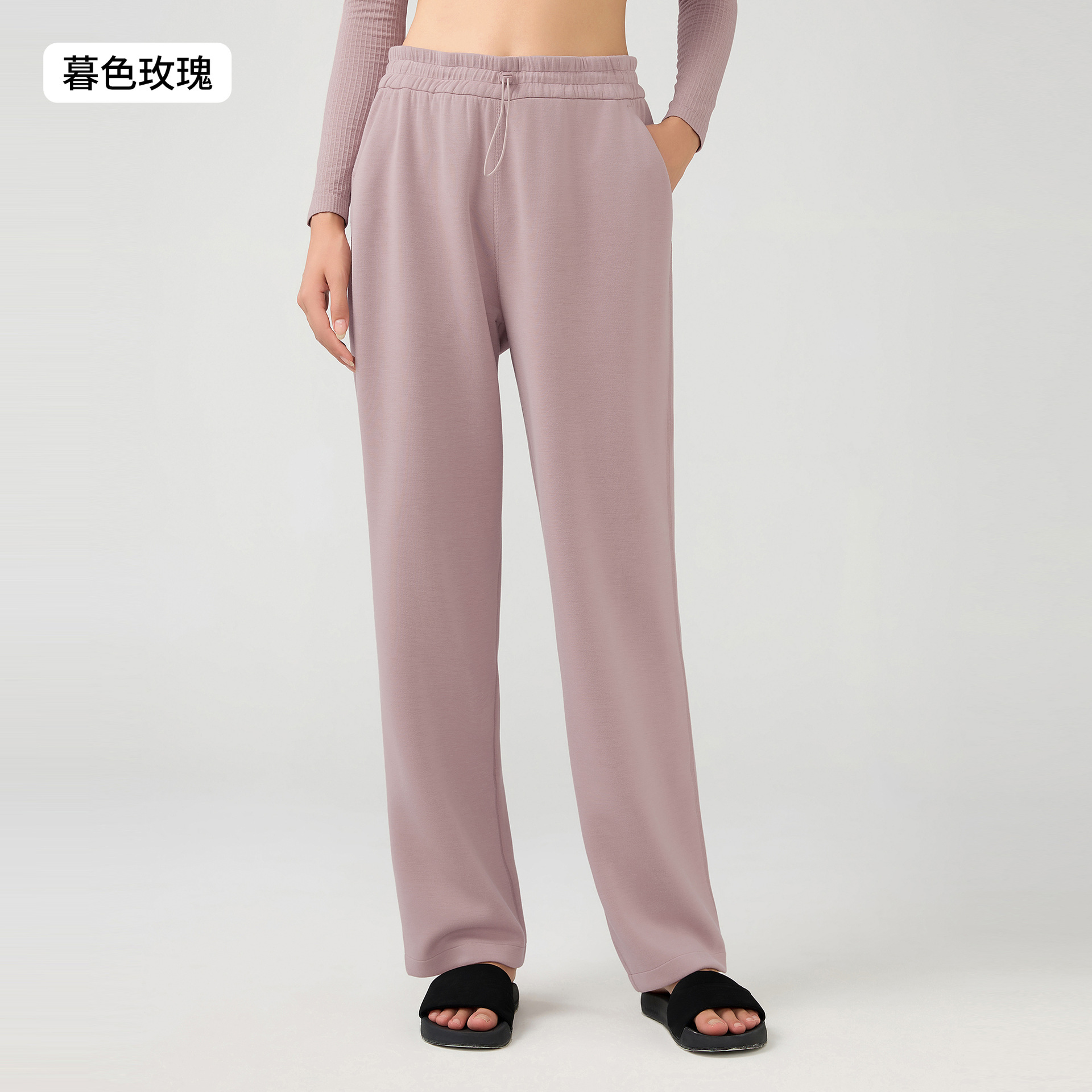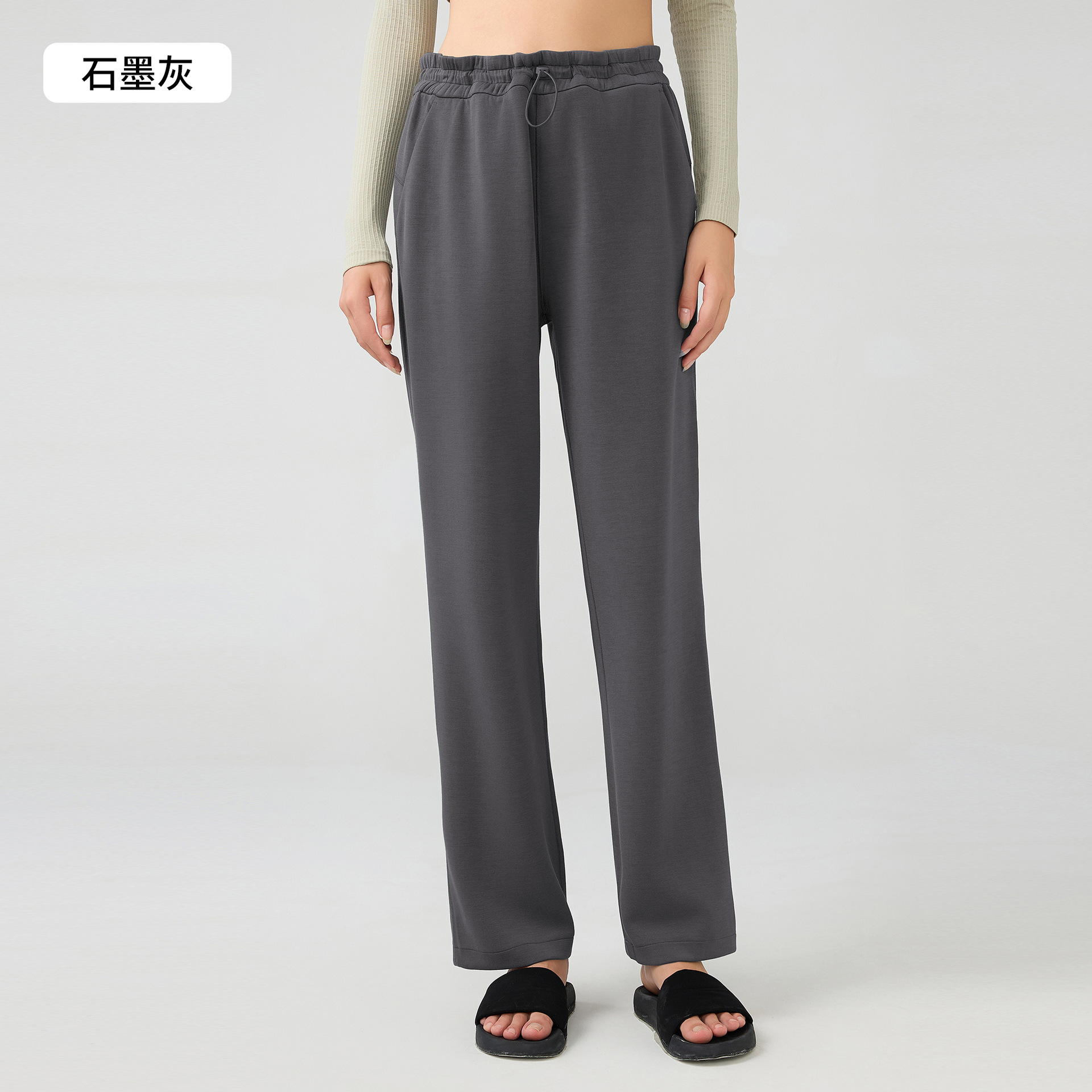 Главная страница > Осенние и зимние повседневные спортивные брюки, покрытые мясом, тонкие и эластические веревки, талия, высокая талия, широкие брюки, длинные брюки DAW167