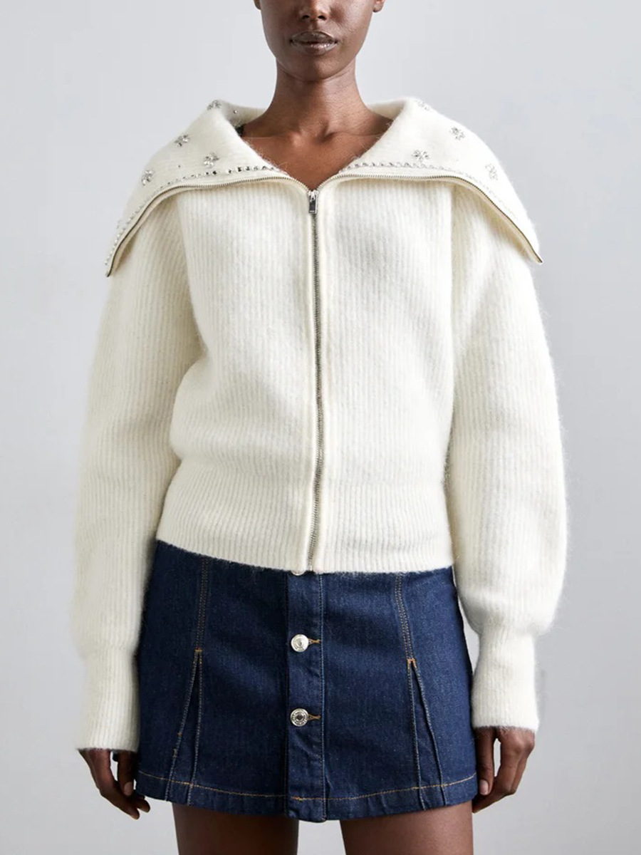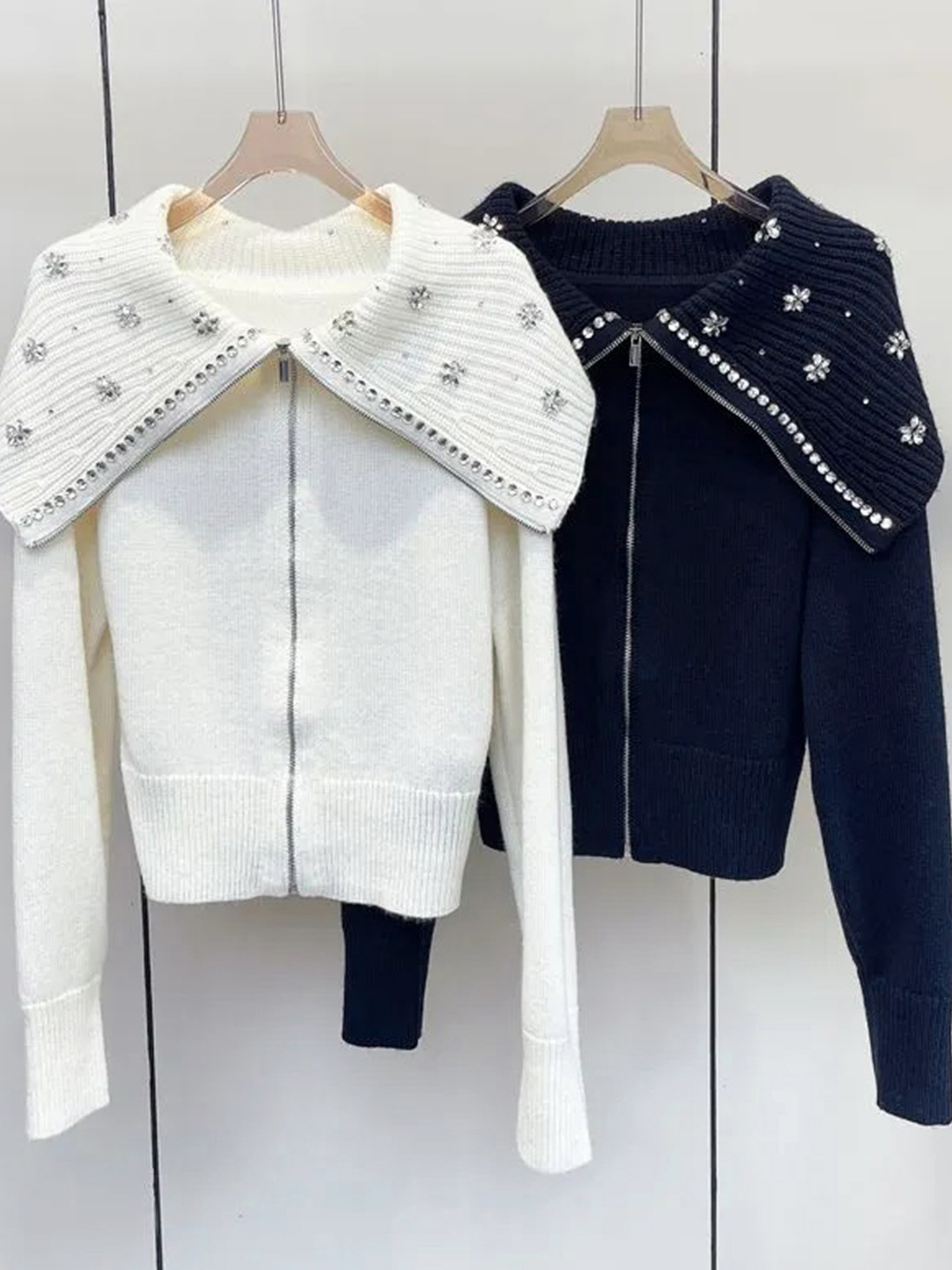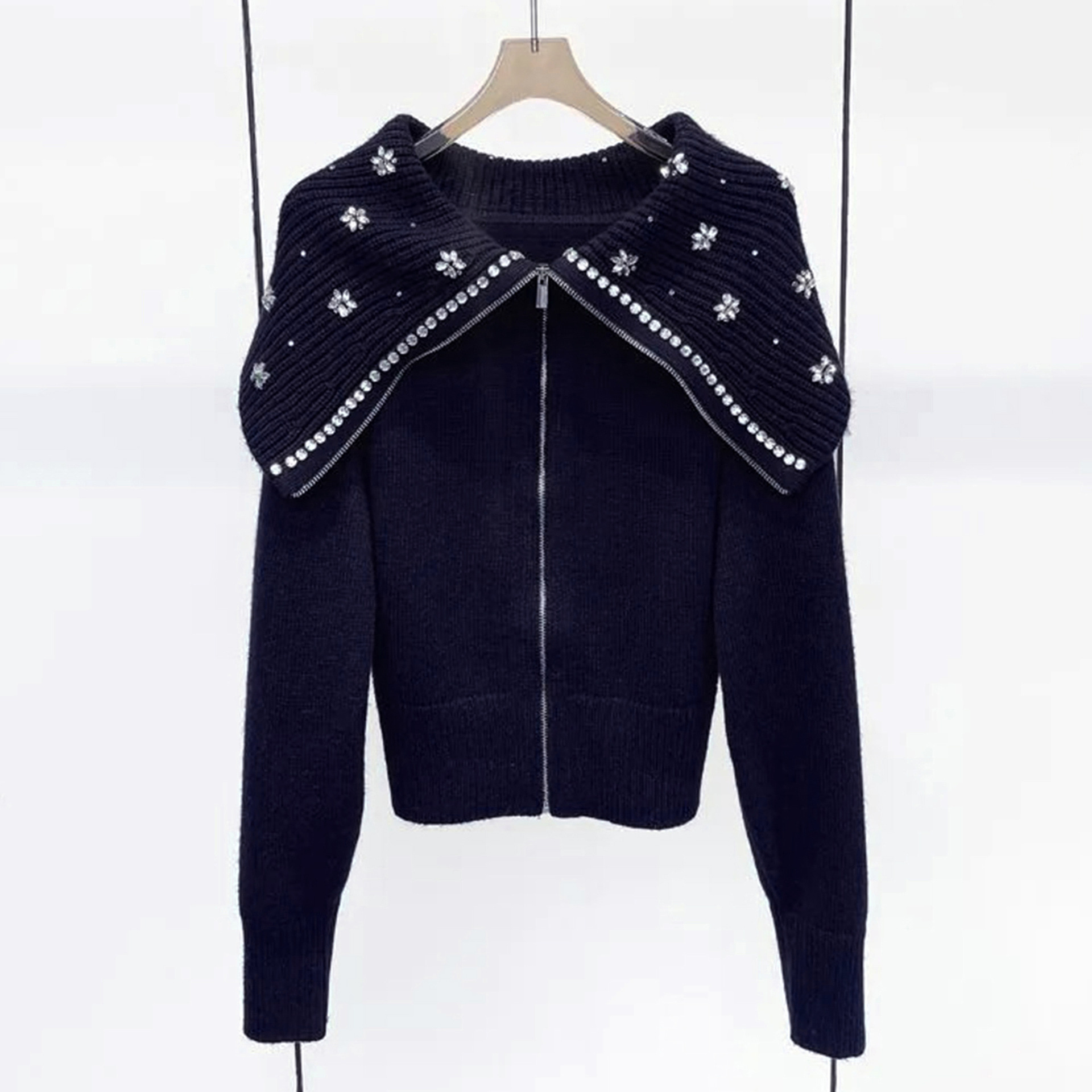Главная страница > Женский модный свитер-кардиган в французском стиле, осень 2025, новая вышивка крючком, цветочный бисерный воротник, темно-синий