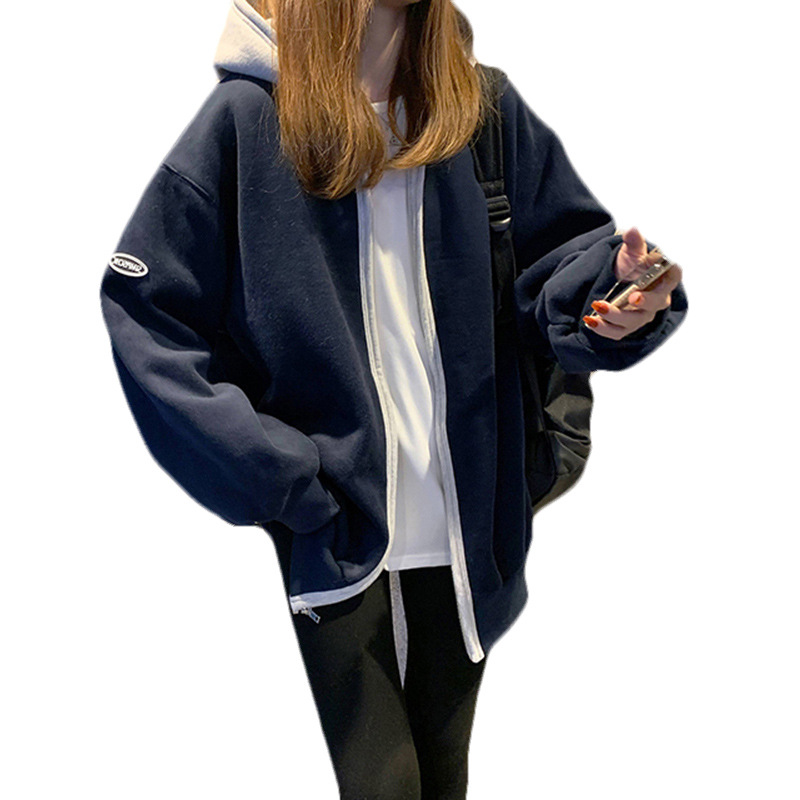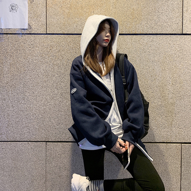 Главная страница > Кардиган, свитер с капюшоном, женская утепленная куртка на флисовой подкладке, свободная большая версия, топ в американском стиле в стиле ретро, KFWQ2287