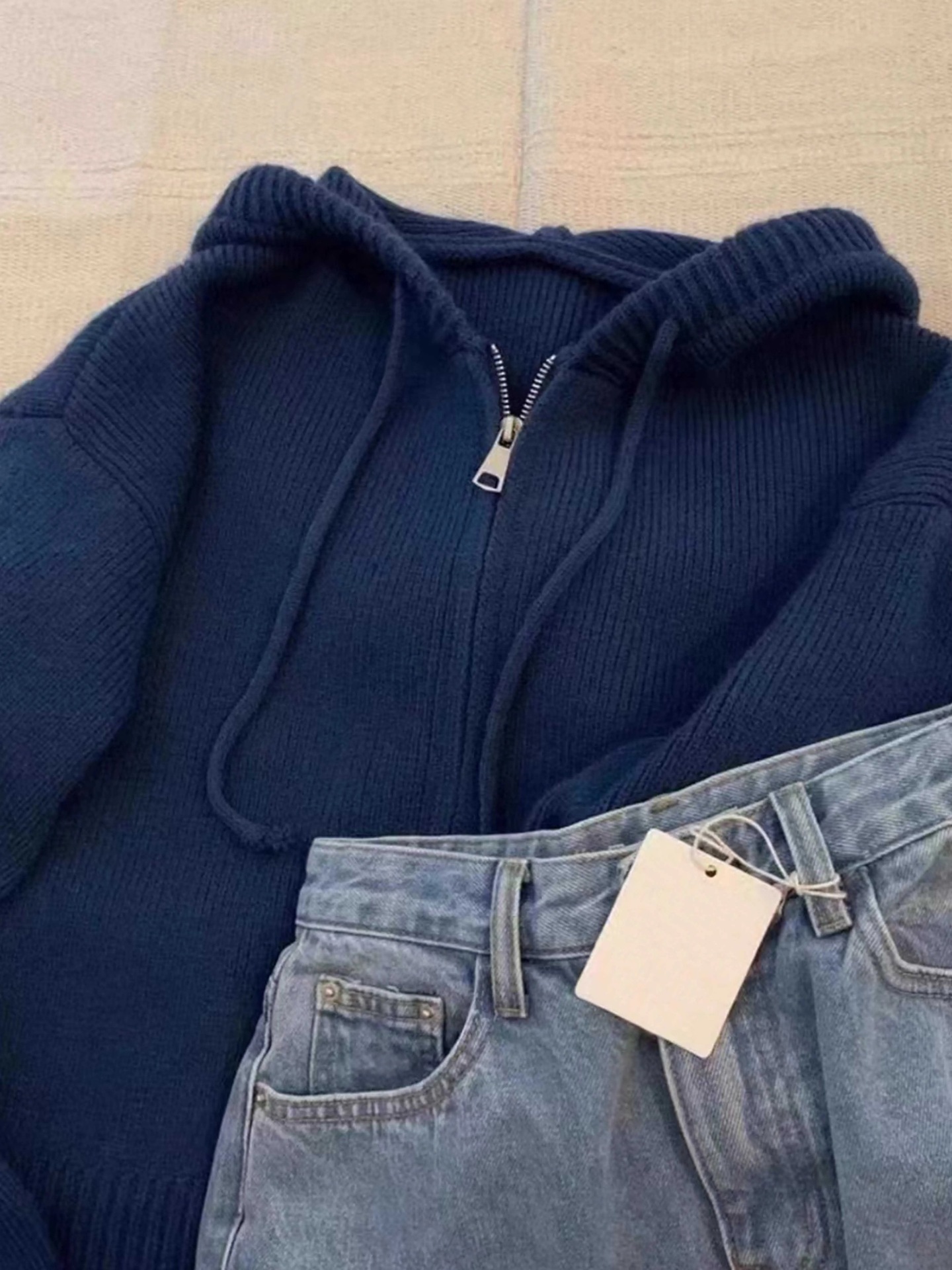 Главная страница > Скрыто-синяя молния енот с флисом свитер куртка женская осень-зима с капюшоном свитер свитер трикотажный кардиган