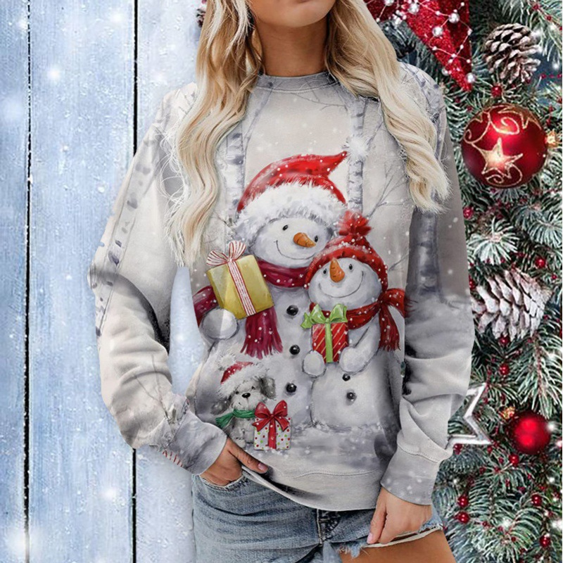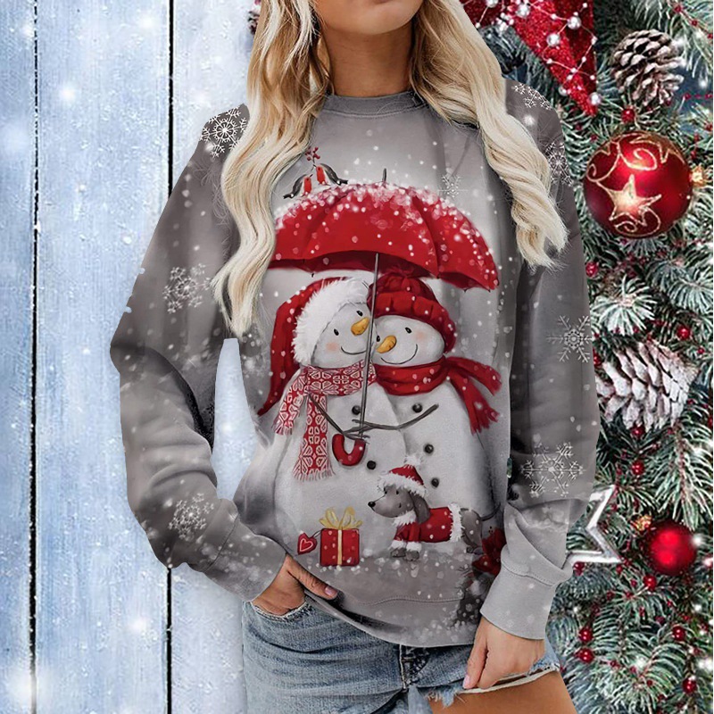 Главная страница > 2023 трансграничный новый рождественский снеговик цифровой принт женский с круглым вырезом с длинным рукавом осенний повседневный пуловер топ