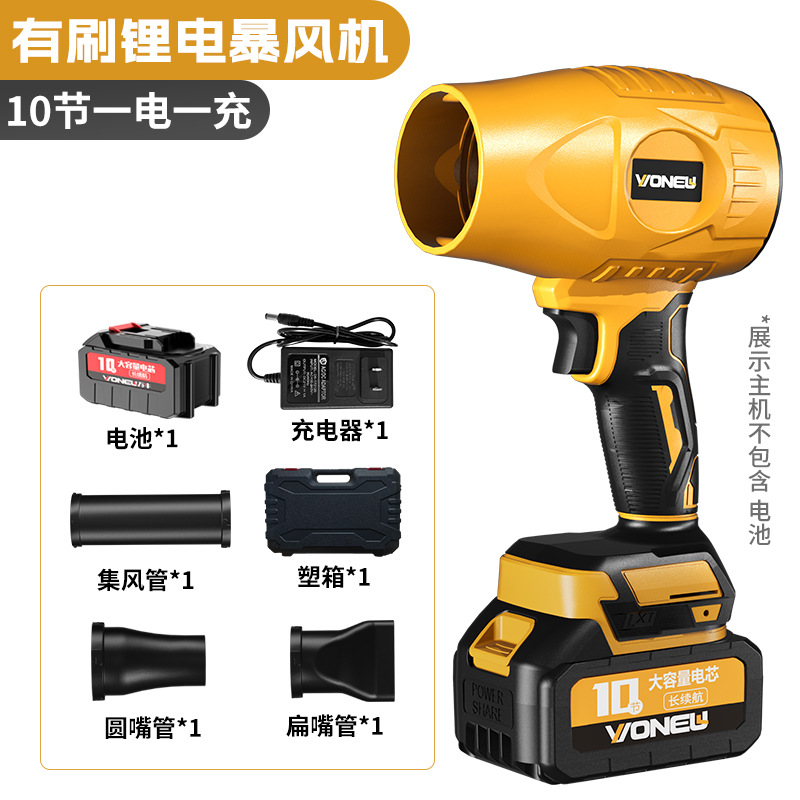 Бесщеточный вентилятор с литиевой батареей, 10 ячеек, две батареи и один заряд, набор из 3 предметов с воздуховодом, разные цвета