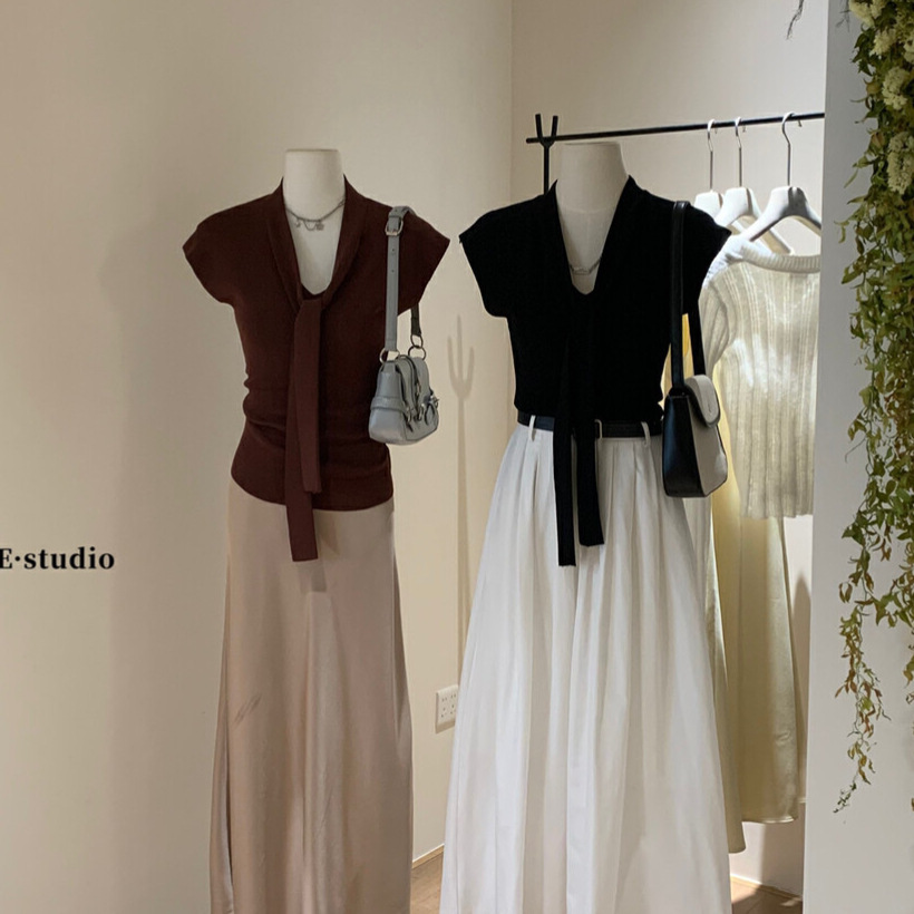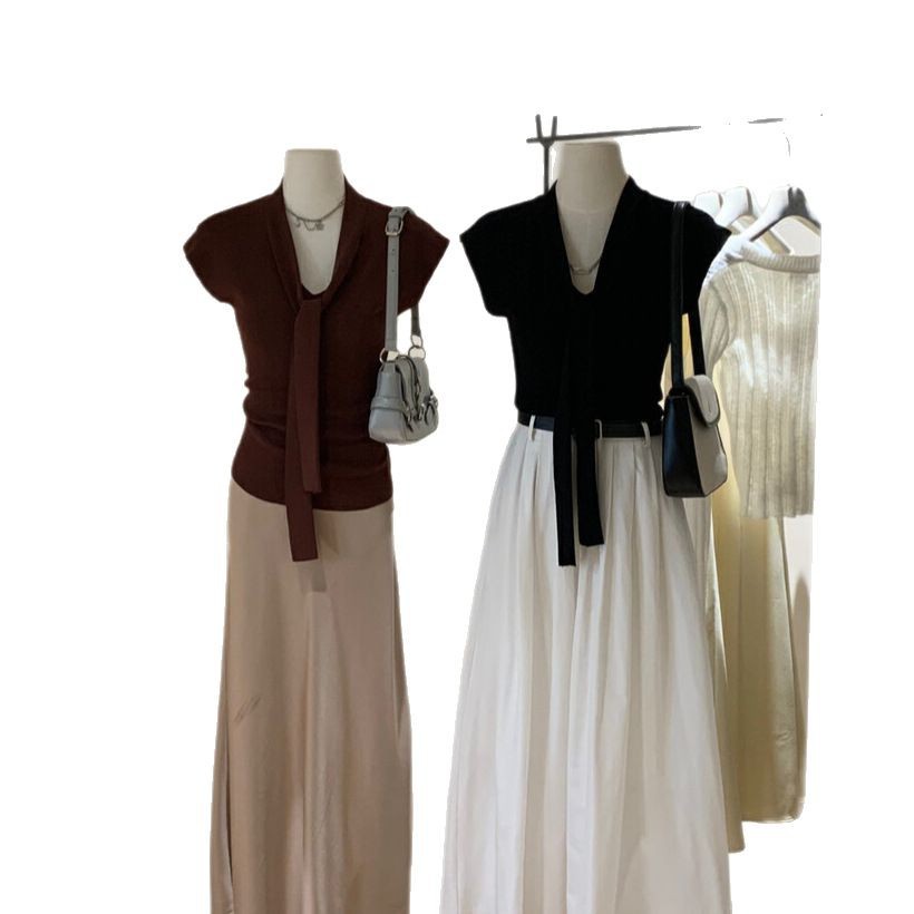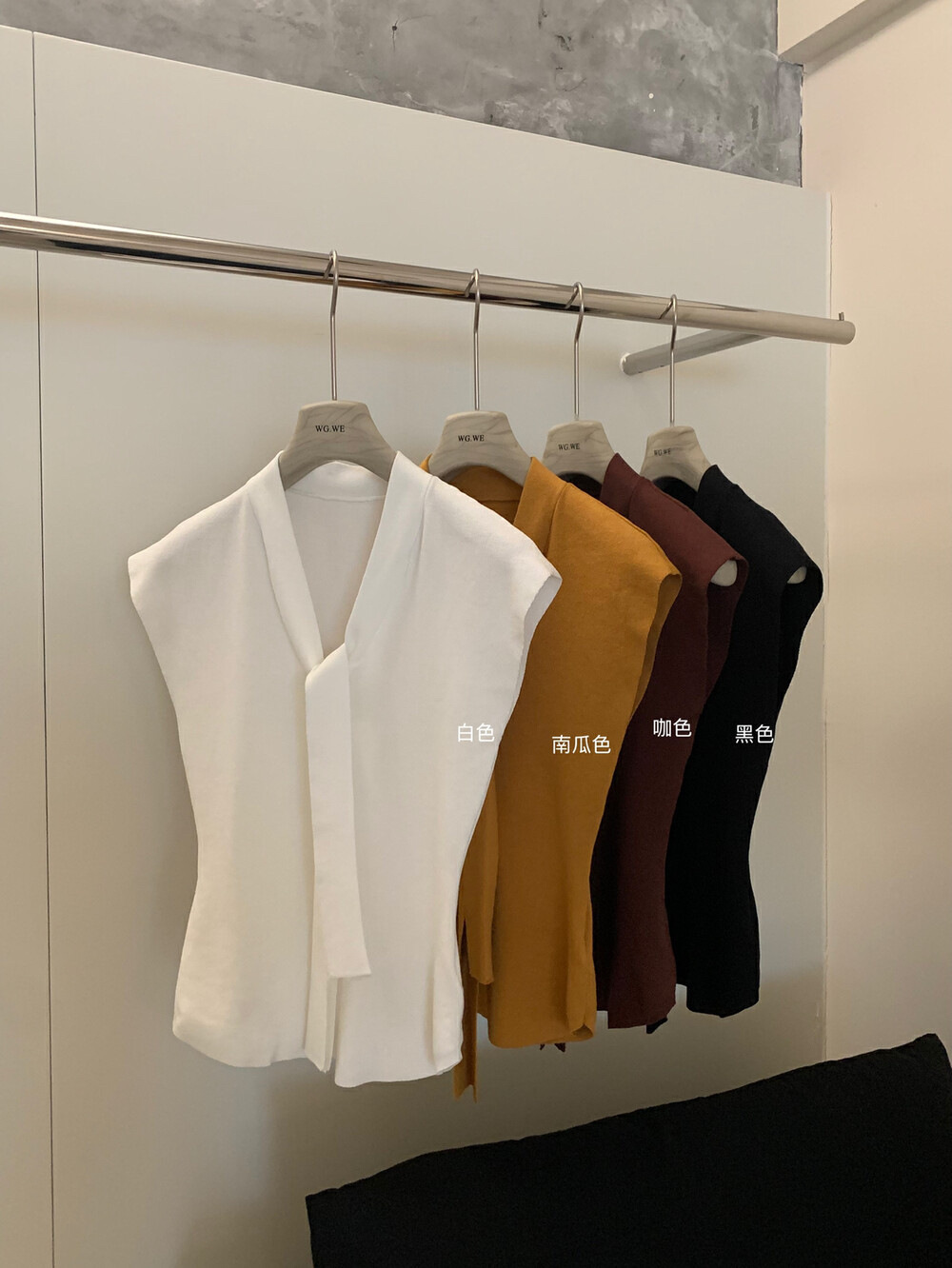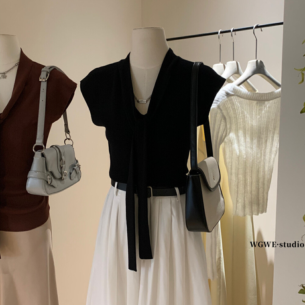 Главная страница > WGWEV ошейник с верхним плечом ледяной шелк с короткими рукавами футболка женская весна и лето тонкая, чистая платка