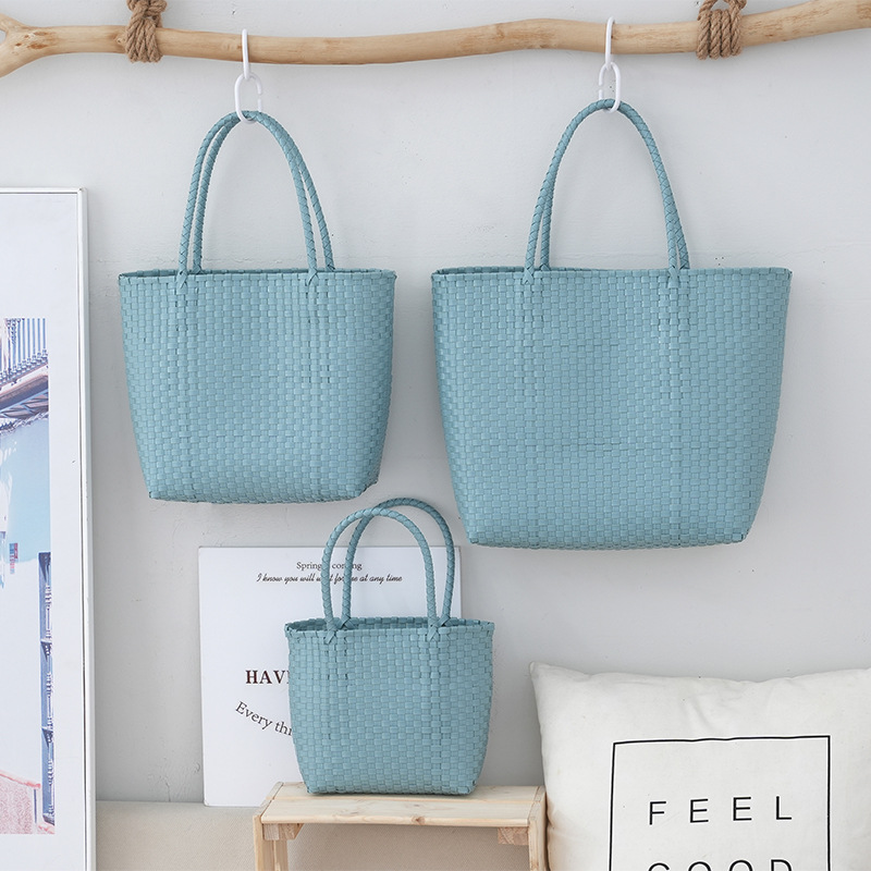 Главная страница > 2024 новый стиль тканый мешок ПВХ овощная корзина ручной тканый мешок с подарочной сумкой для девочек большой емкости пляжная сумка