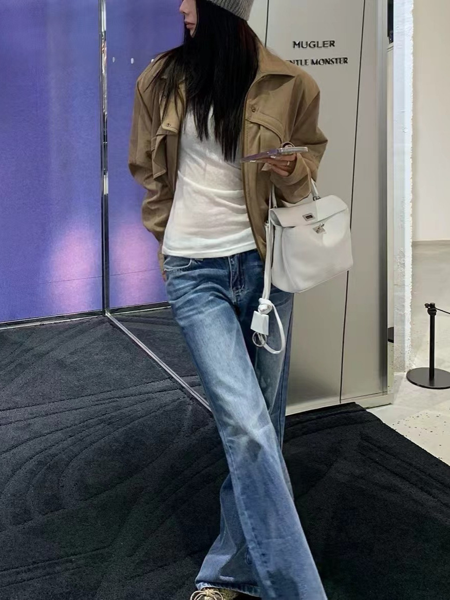 Главная страница > Джинсы SUNONEOEN в американском стиле с заниженной талией для женщин, осенние винтажные широкие брюки-клеш для стройности, повседневные, в стиле ретро.
