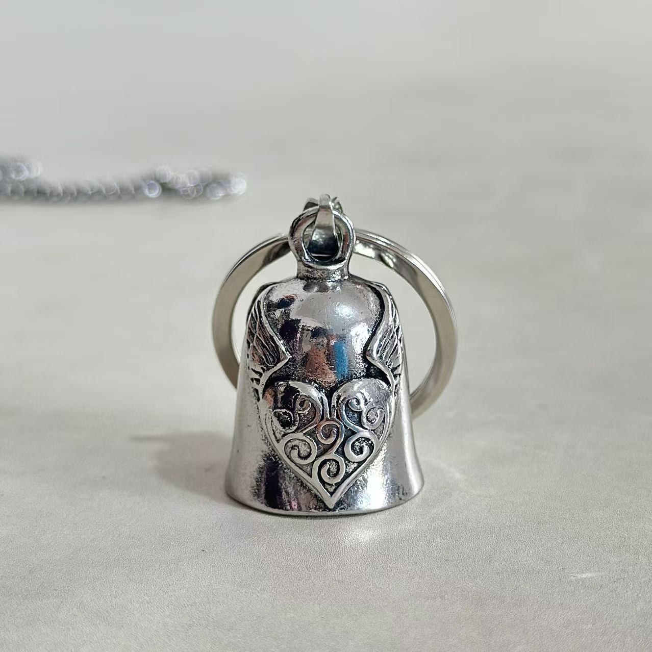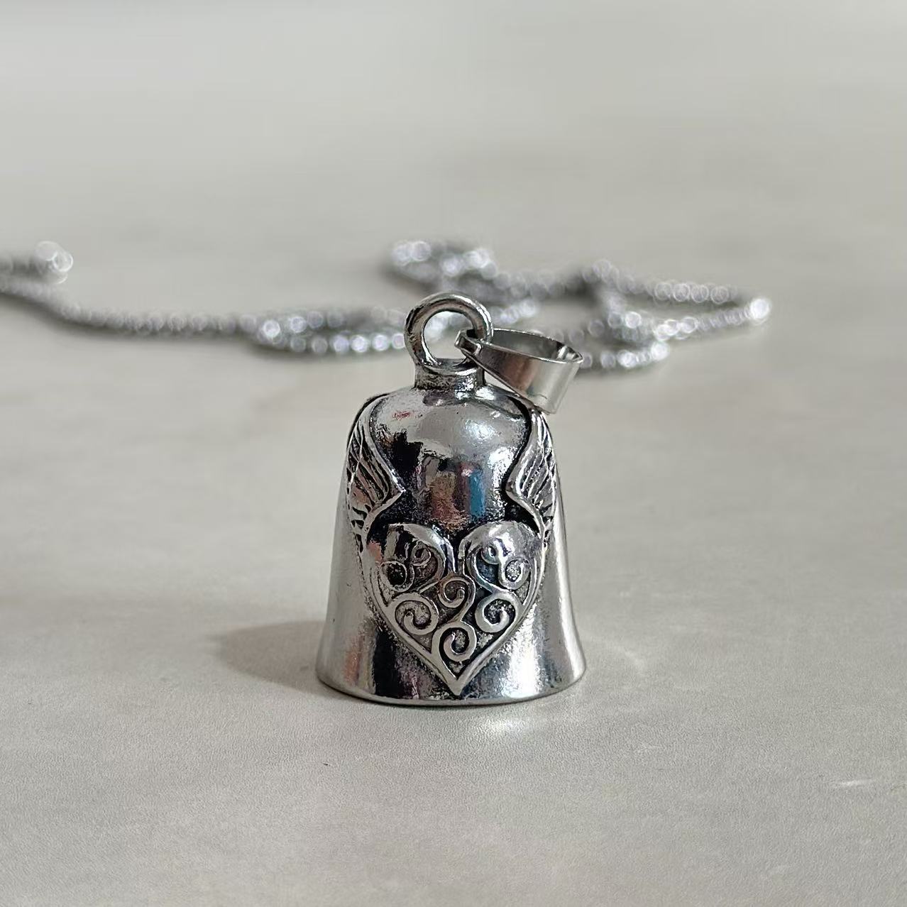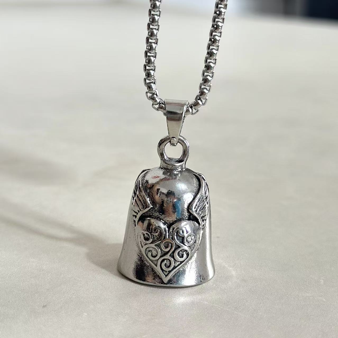 Главная страница > Трансграничная внешняя торговля новый ретро персиковое сердце крылья колокольчик подвеска мужской женский локомотив череп колокольчик ожерелье подвеска
