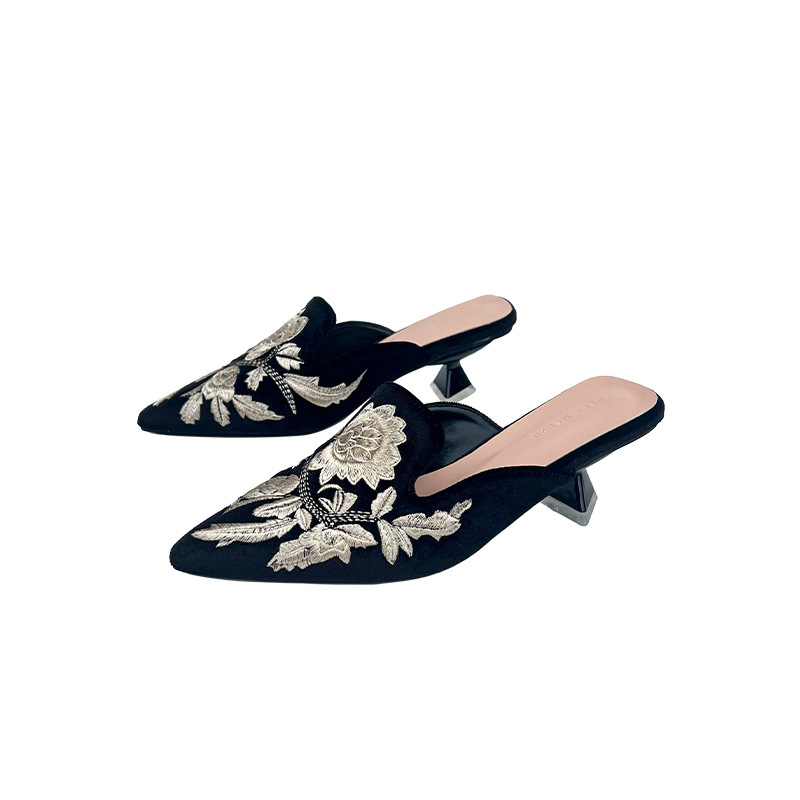 Вышитые муллер туфли на среднем каблуке туфли на одном каблуке женские летние 2024 новые тапки на высоком каблуке полутолщенные замшевые подошвы
